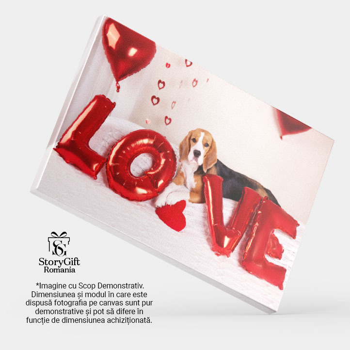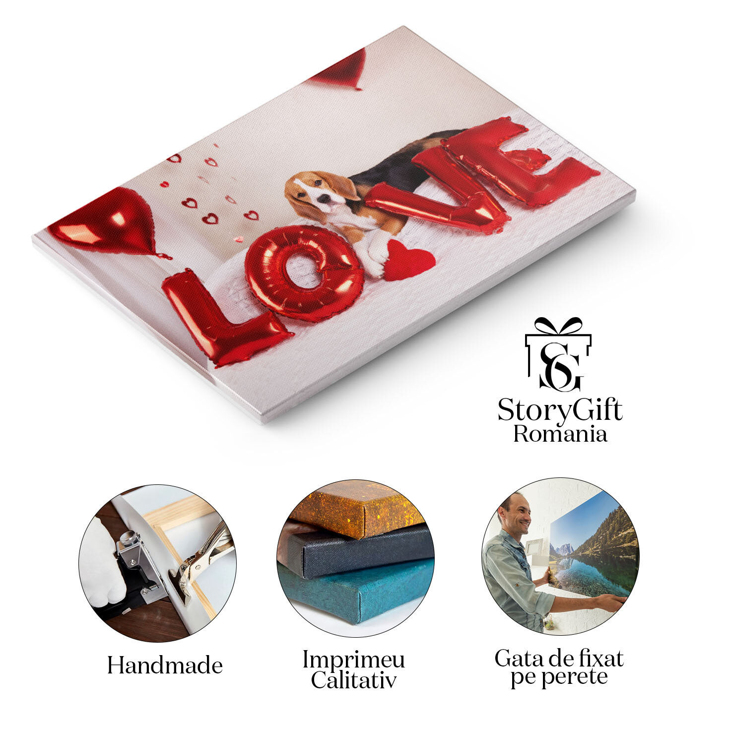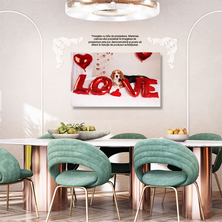 Tablou Canvas Cainele Beagle sta pe pat intr-o camera decorata, caine, Beagle, iubire, prezent, inima 4475 40x25CM