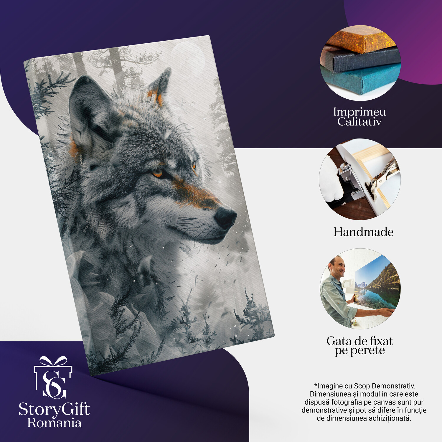 Tablou Canvas Energia Lupului Agil Fantomele Haitei in Regatul Alb sub Clar de Luna , Pictura Digitala - Tablou Canvas Signature de la StoryGift Romania