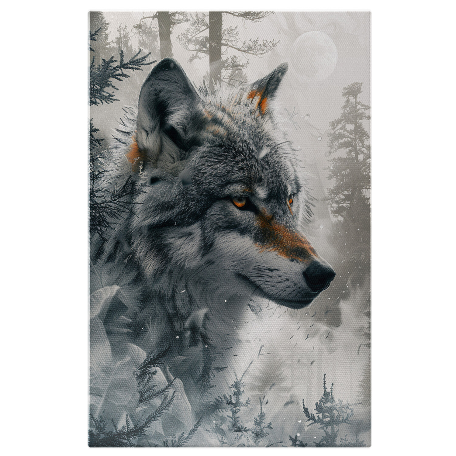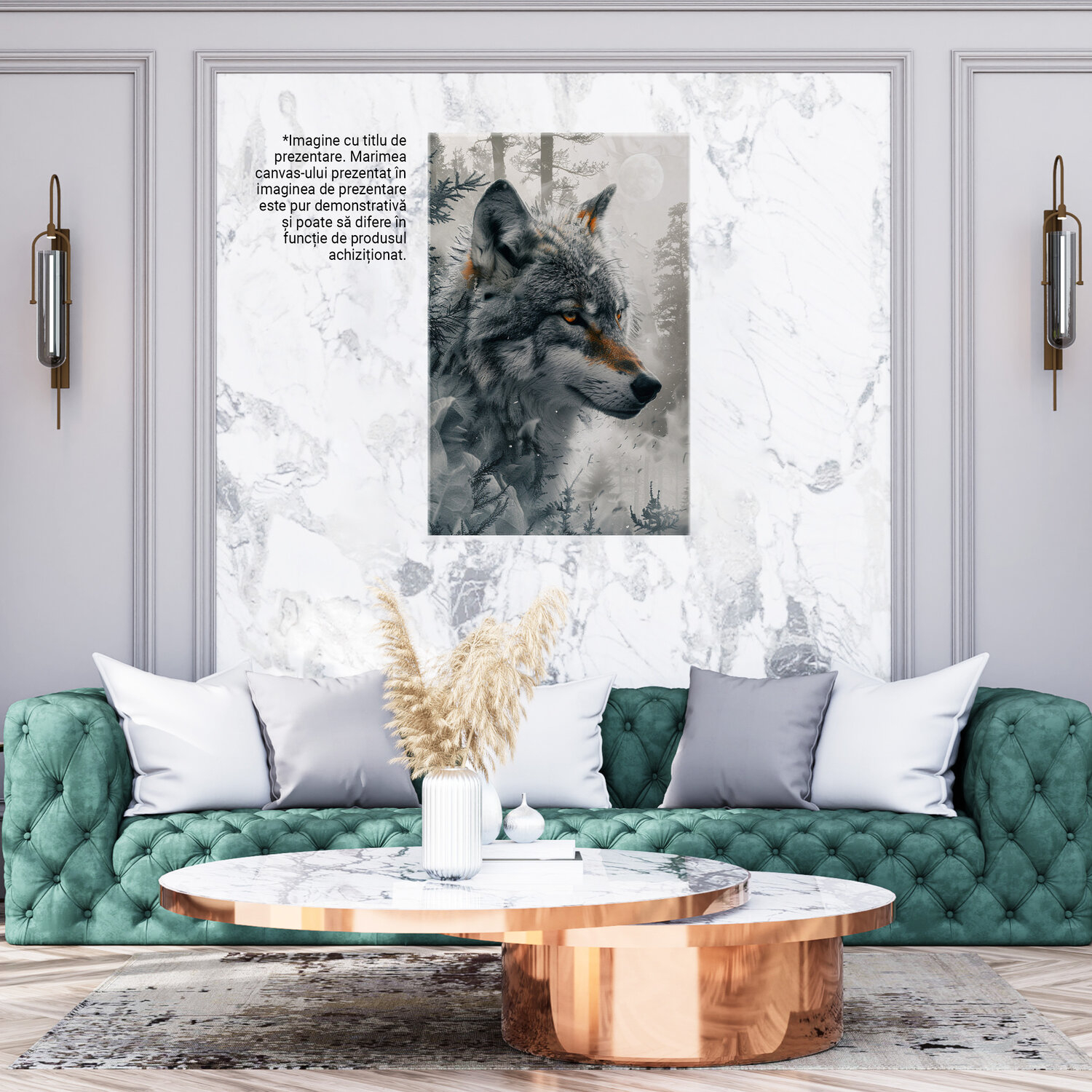 Tablou Canvas Energia Lupului Agil Fantomele Haitei in Regatul Alb sub Clar de Luna , Pictura Digitala 40x25CM