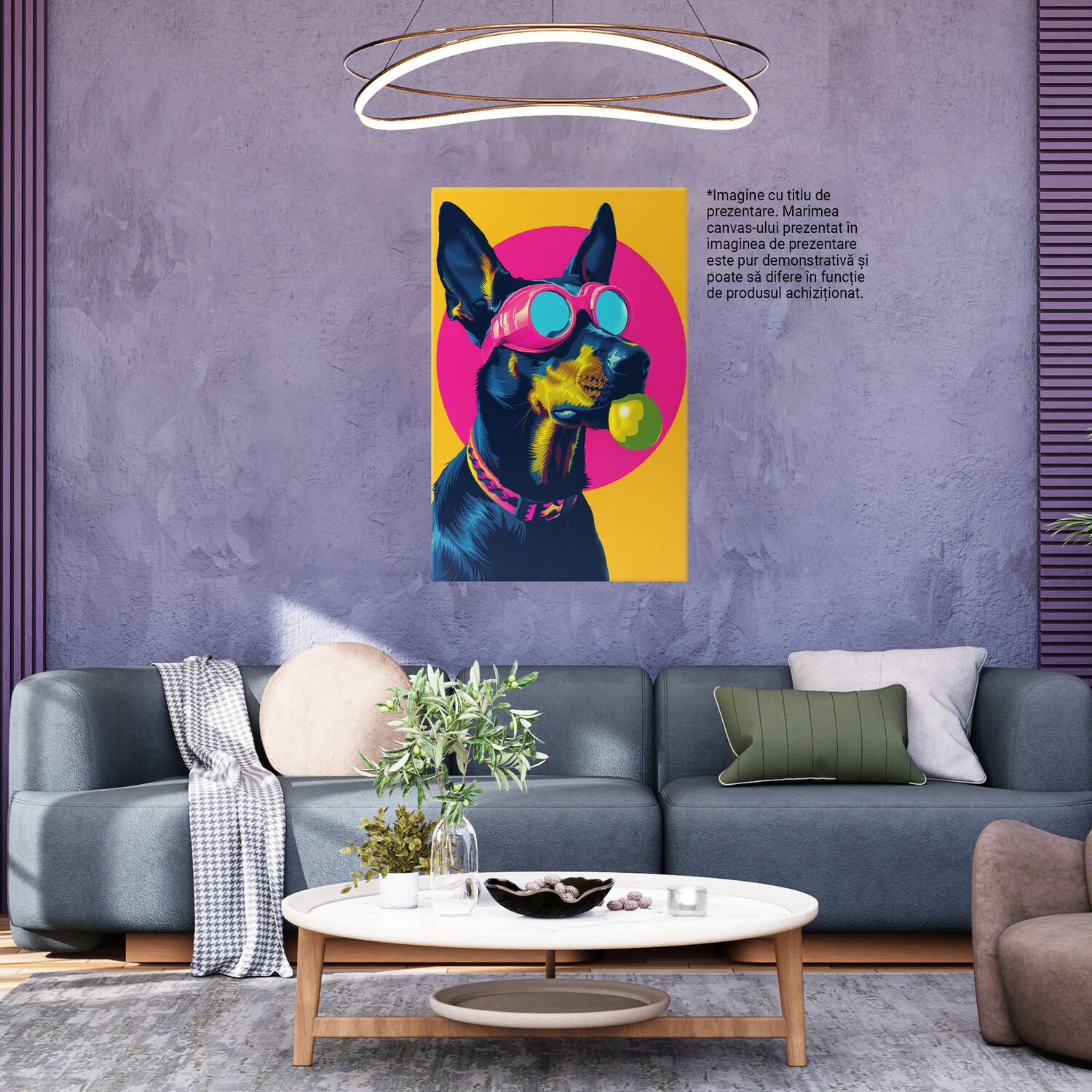 Tablou Canvas Portretul in Culori Contrastante Ciobanesc German cu Ochelari Desen Captivant , Pictura Digitala 100x70CM