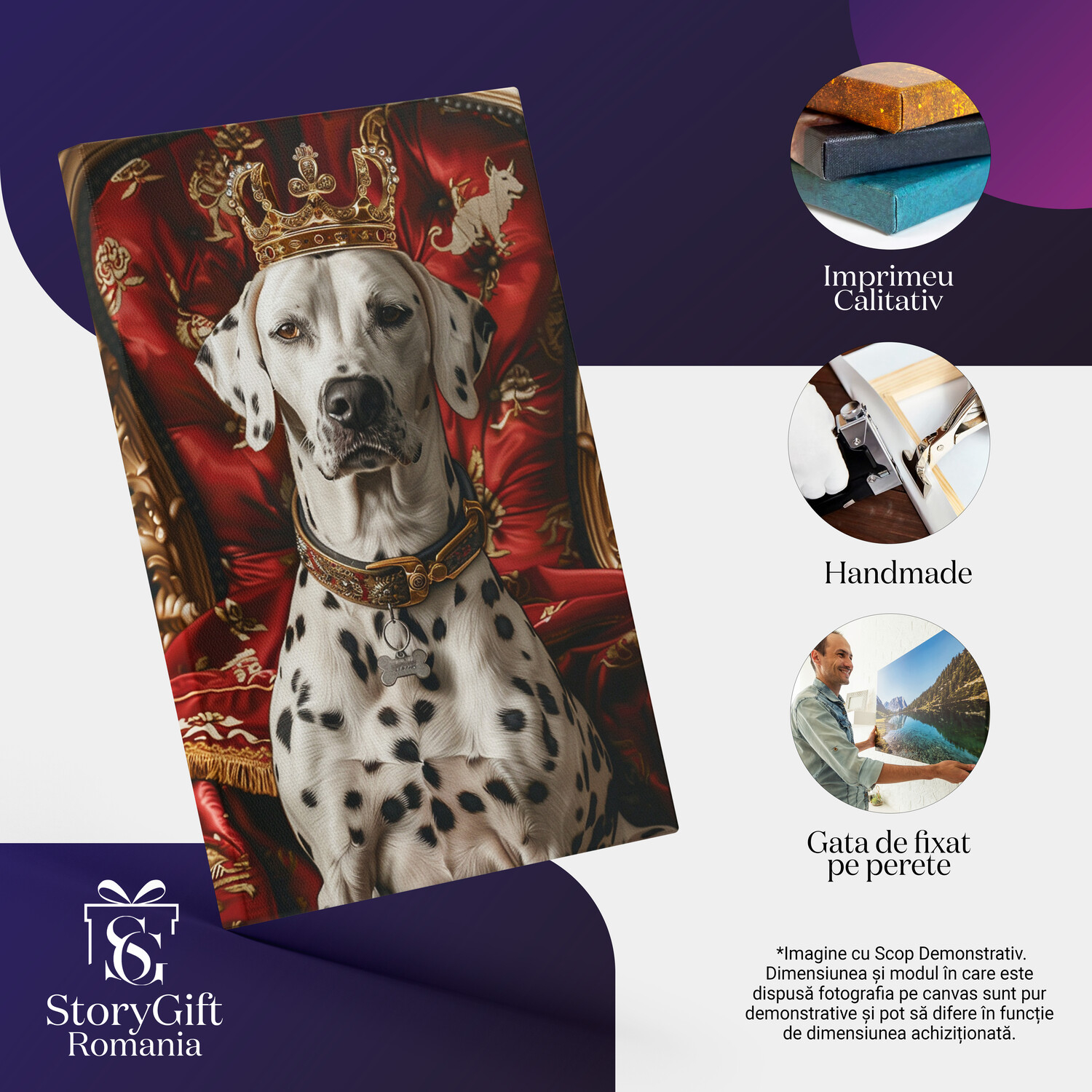 Notă importantă: Precizăm că imaginile de pe site au scop ilustrativ. Detaliile reale ale produsului pot prezenta diferențe minore față de reprezentările digitale, datorită variațiilor de culoare, mărimea tabloului și rezoluția dispozitivelor. Disponibilitatea în diverse dimensiuni ne permite să satisfacem nevoile dvs. specifice; pentru a vă asigura de alegerea potrivită, recomandăm măsurarea atentă a spațiului alocat.