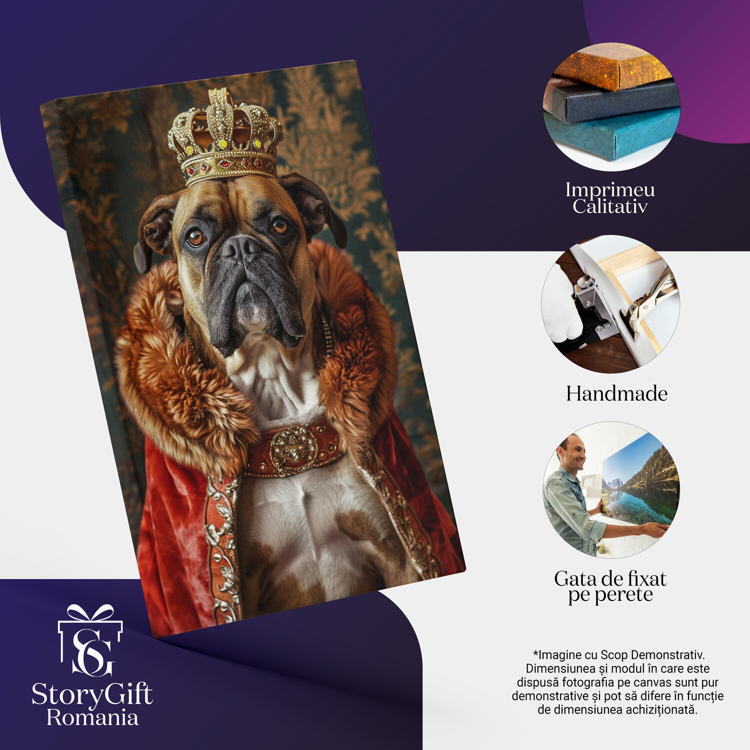 Tablou Canvas Regalitate Canina Boxer Francez In Straie de Fanfaron si Coroana cu Nestemate , Pictura Digitala - Tablou Canvas Signature de la StoryGift Romania