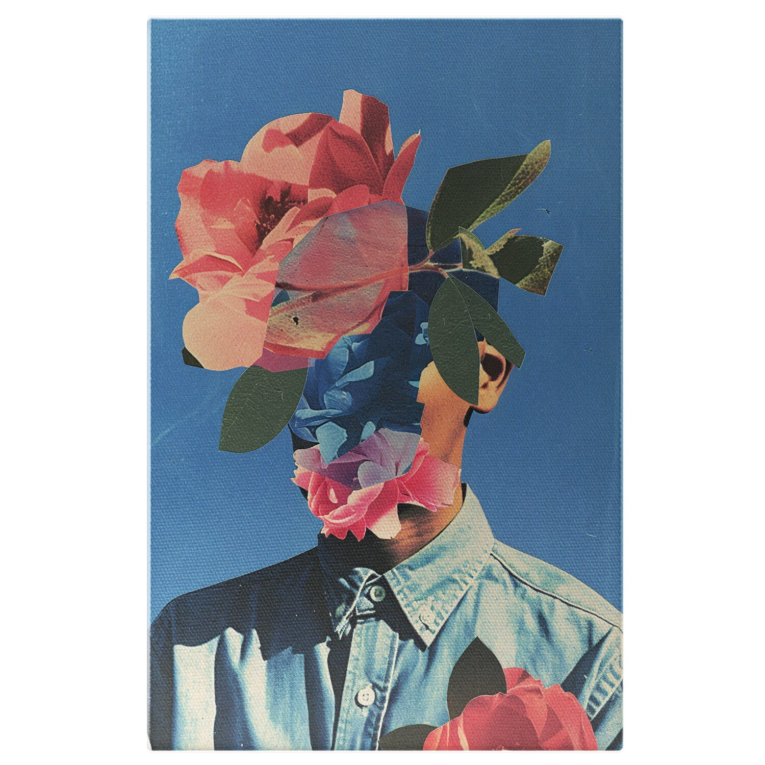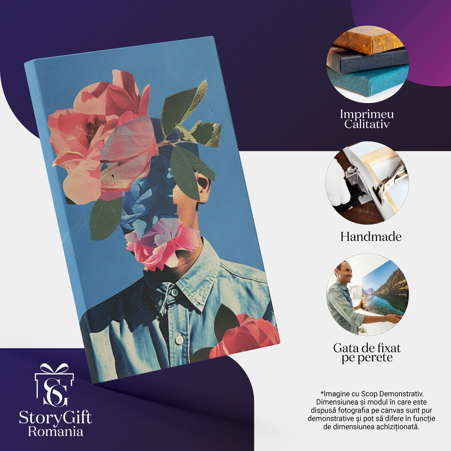 Tablou Canvas Barbat ce are chipul acoperit de flori salbatice- Camasa si flori delicate , Pictura Digitala - Tablou Canvas Signature de la StoryGift Romania
