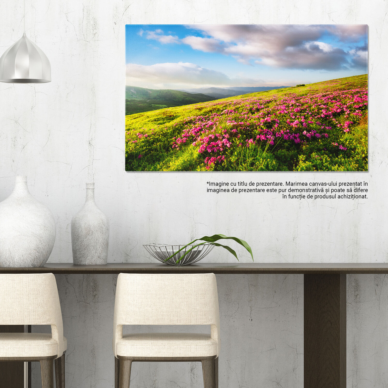 Tablou Canvas Camp de Flori la Apus in Munti, peisaj, munte, calatorie, apus, flori