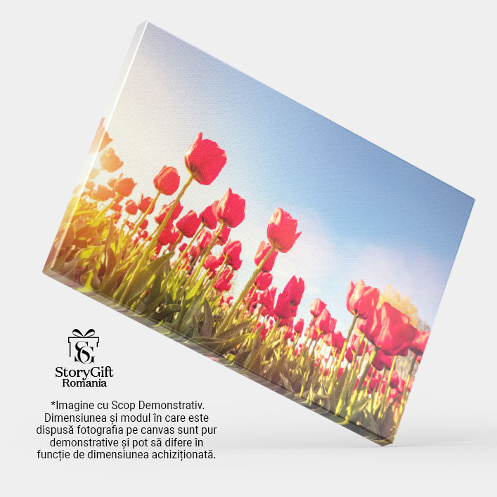 Tablou Canvas Camp de Lalele in Bloom intr-o Zi insorita de Primavara, albastru, natura, agricultura 4843 40x25CM