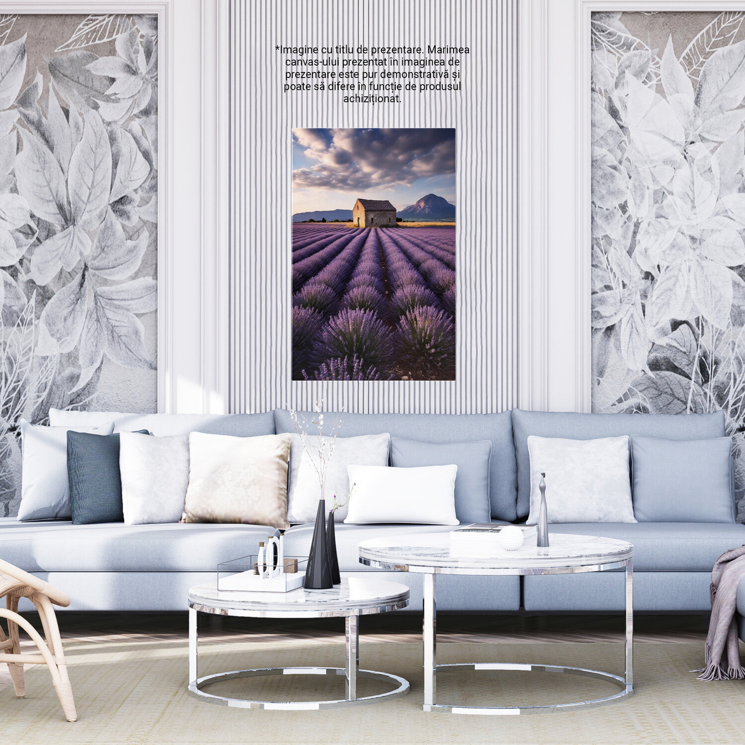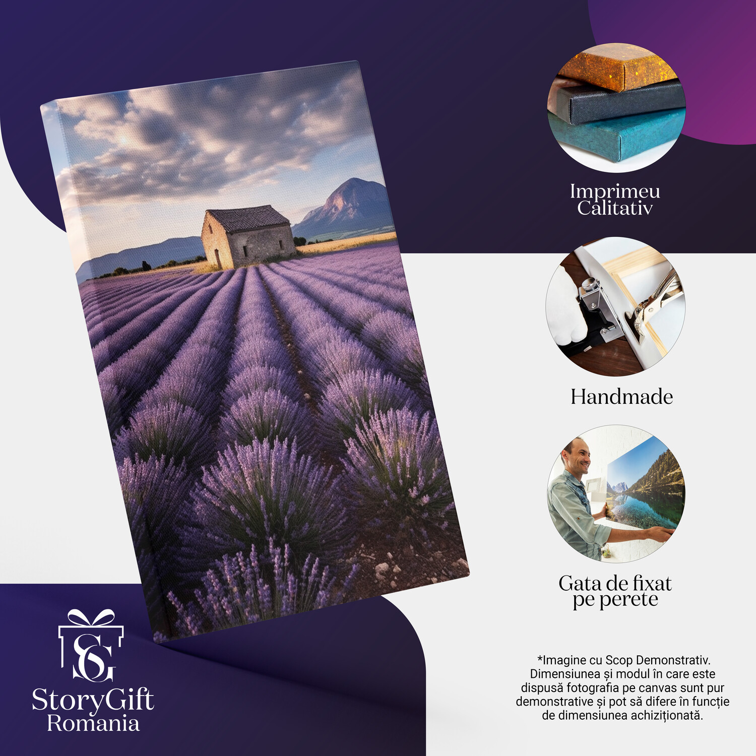 Tablou Canvas: Camp plin cu lavanda - hambar munte in departare Pictura Digitala - Tablou Canvas Signature de la StoryGift Romania