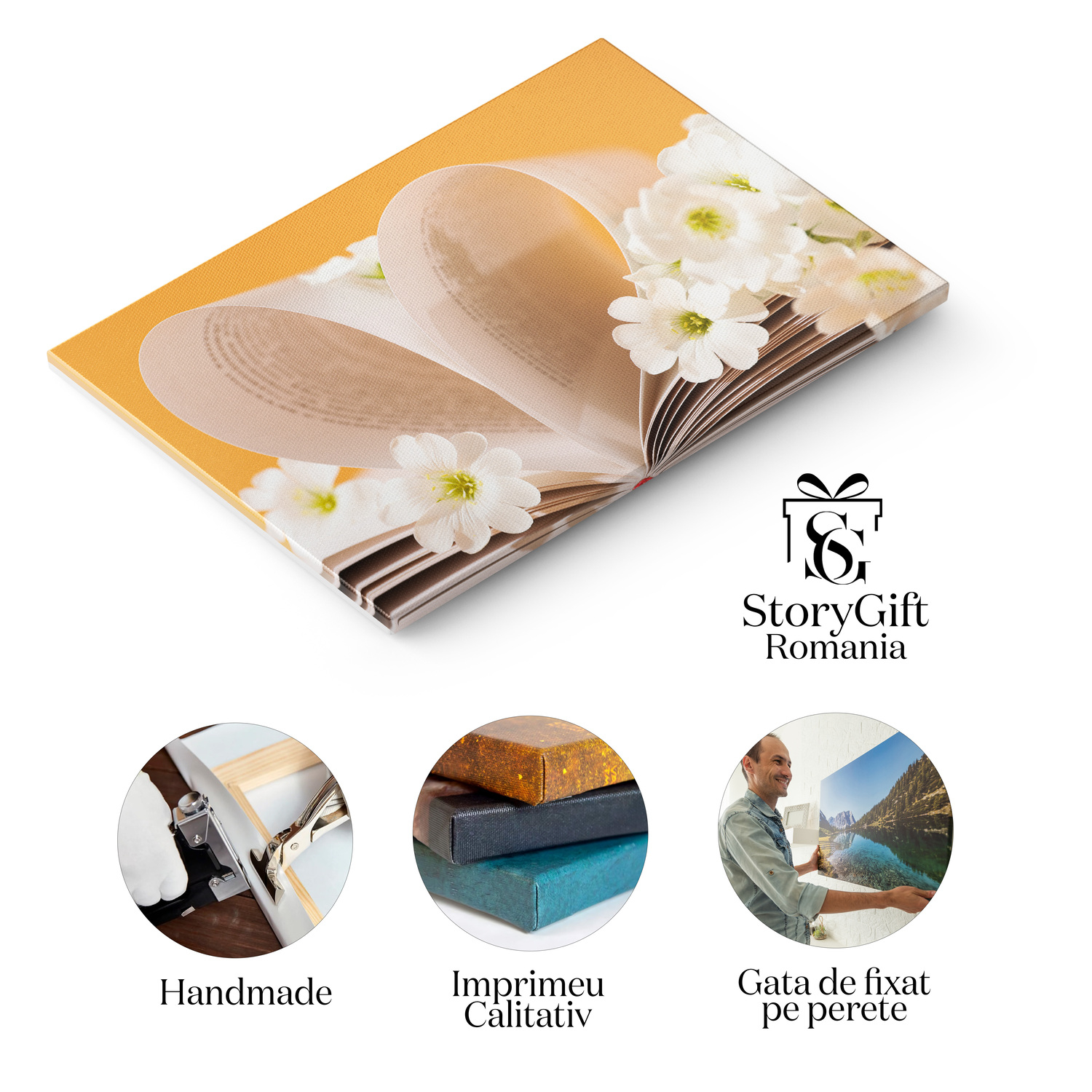 Tablou Canvas: Carti si Flori: Bucurie si Cultura - Tablou Canvas Signature de la StoryGift Romania