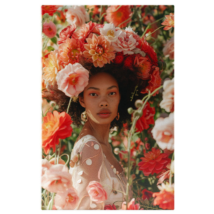 Tablou Canvas: Tanlou Portret Afro în Cadru cu Flori- Natură și Frumusețe Pictura Digitala 40x25CM