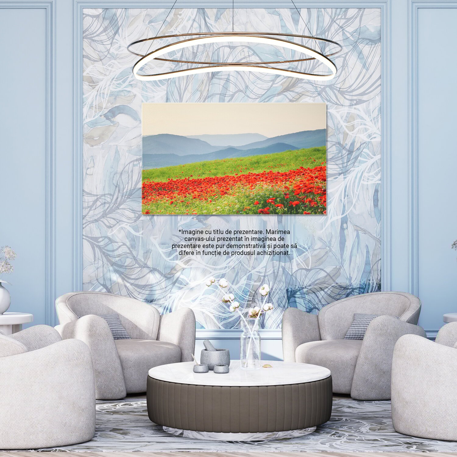 Notă importantă: Precizăm că imaginile de pe site au scop ilustrativ. Detaliile reale ale produsului pot prezenta diferențe minore față de reprezentările digitale, datorită variațiilor de culoare, mărimea tabloului și rezoluția dispozitivelor. Disponibilitatea în diverse dimensiuni ne permite să satisfacem nevoile dvs. specifice; pentru a vă asigura de alegerea potrivită, recomandăm măsurarea atentă a spațiului alocat.