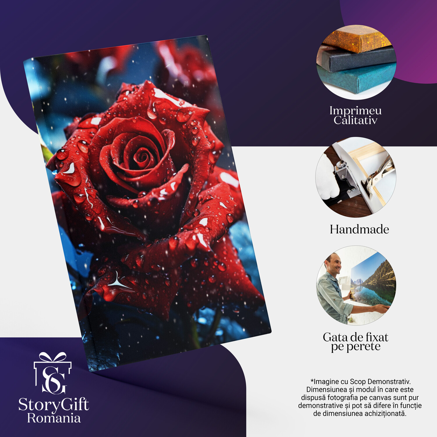 Tablou Canvas: Fotografie cu un trandafir rosu - picaturi de ploaie Pictura Digitala - Tablou Canvas Signature de la StoryGift Romania