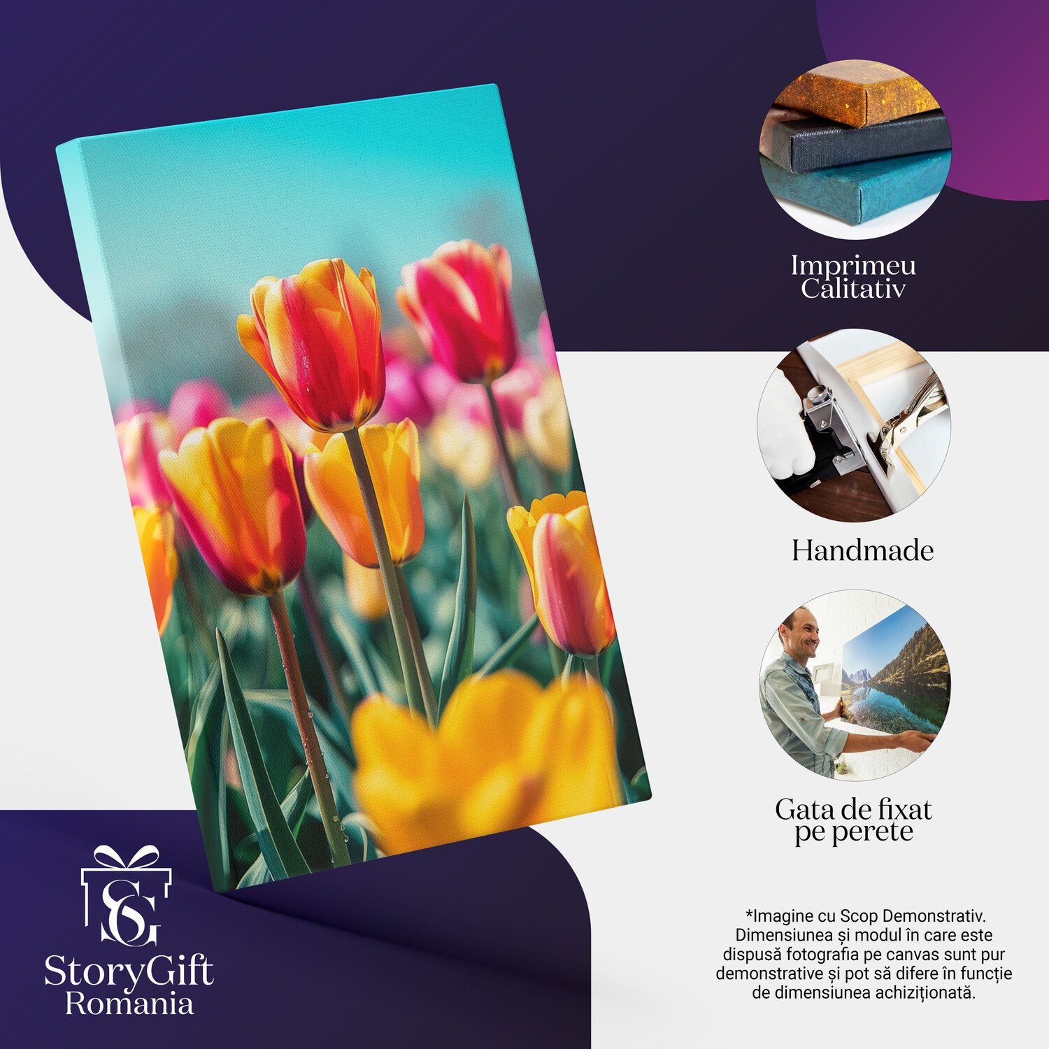Notă importantă: Precizăm că imaginile de pe site au scop ilustrativ. Detaliile reale ale produsului pot prezenta diferențe minore față de reprezentările digitale, datorită variațiilor de culoare, mărimea tabloului și rezoluția dispozitivelor. Disponibilitatea în diverse dimensiuni ne permite să satisfacem nevoile dvs. specifice; pentru a vă asigura de alegerea potrivită, recomandăm măsurarea atentă a spațiului alocat.