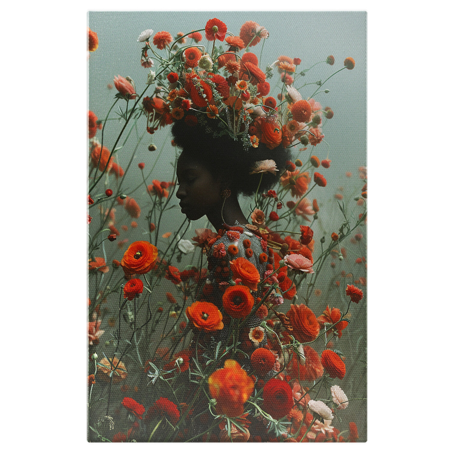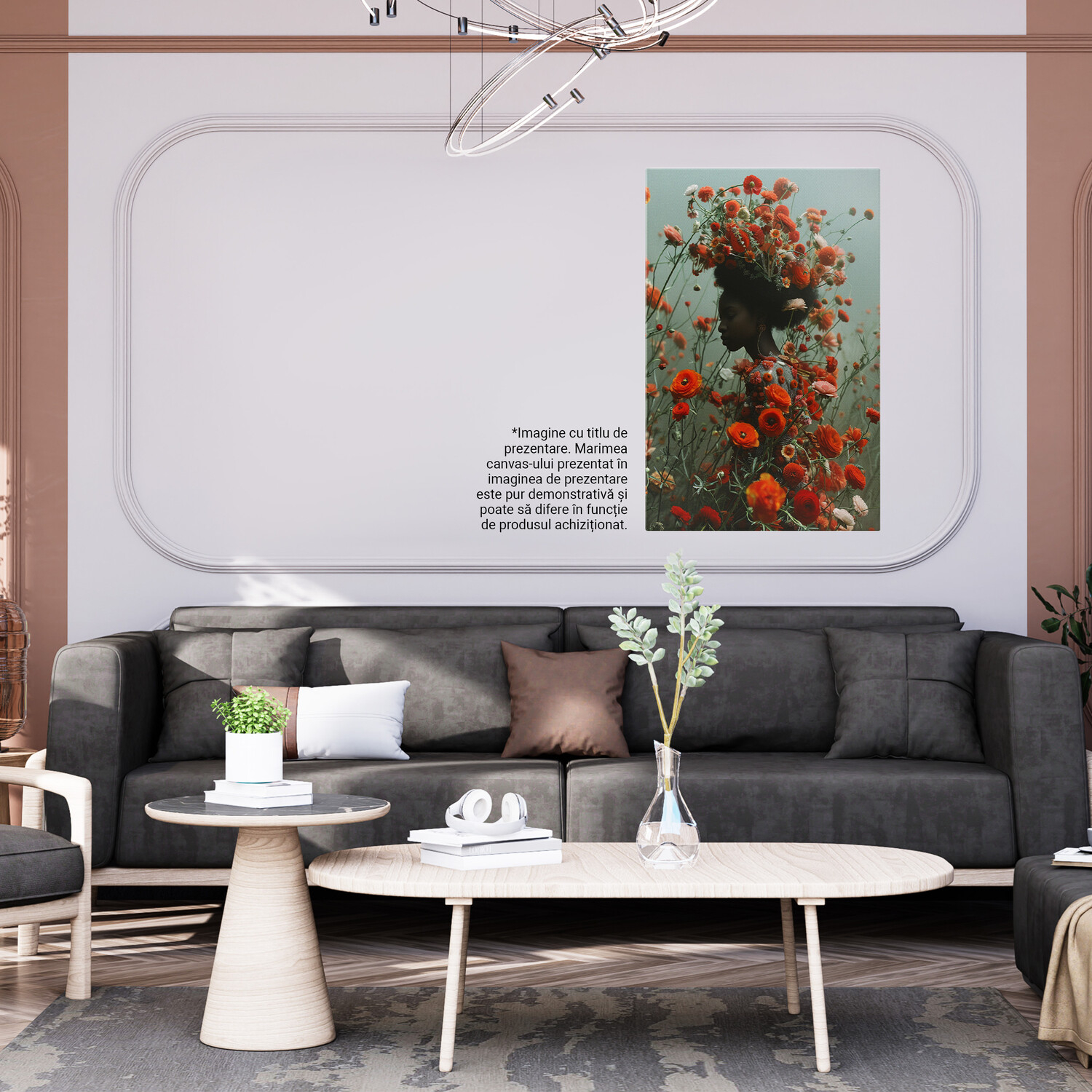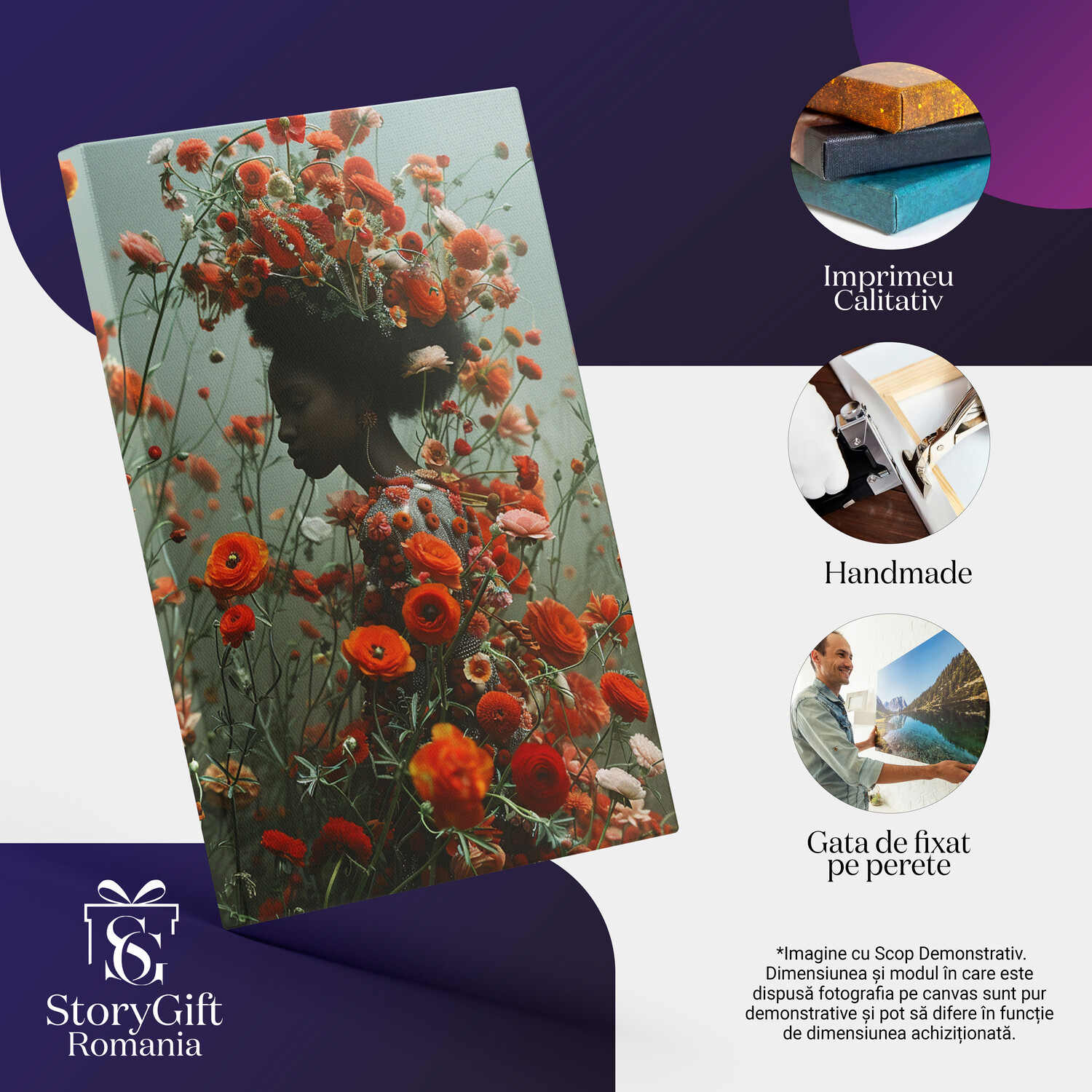 Tablou Canvas: O Calatorie spre Centrul Inimii prin Arta Naturii Doamna cu Flori si Piele de Abanos Pictura Digitala - Tablou Canvas Signature de la StoryGift Romania