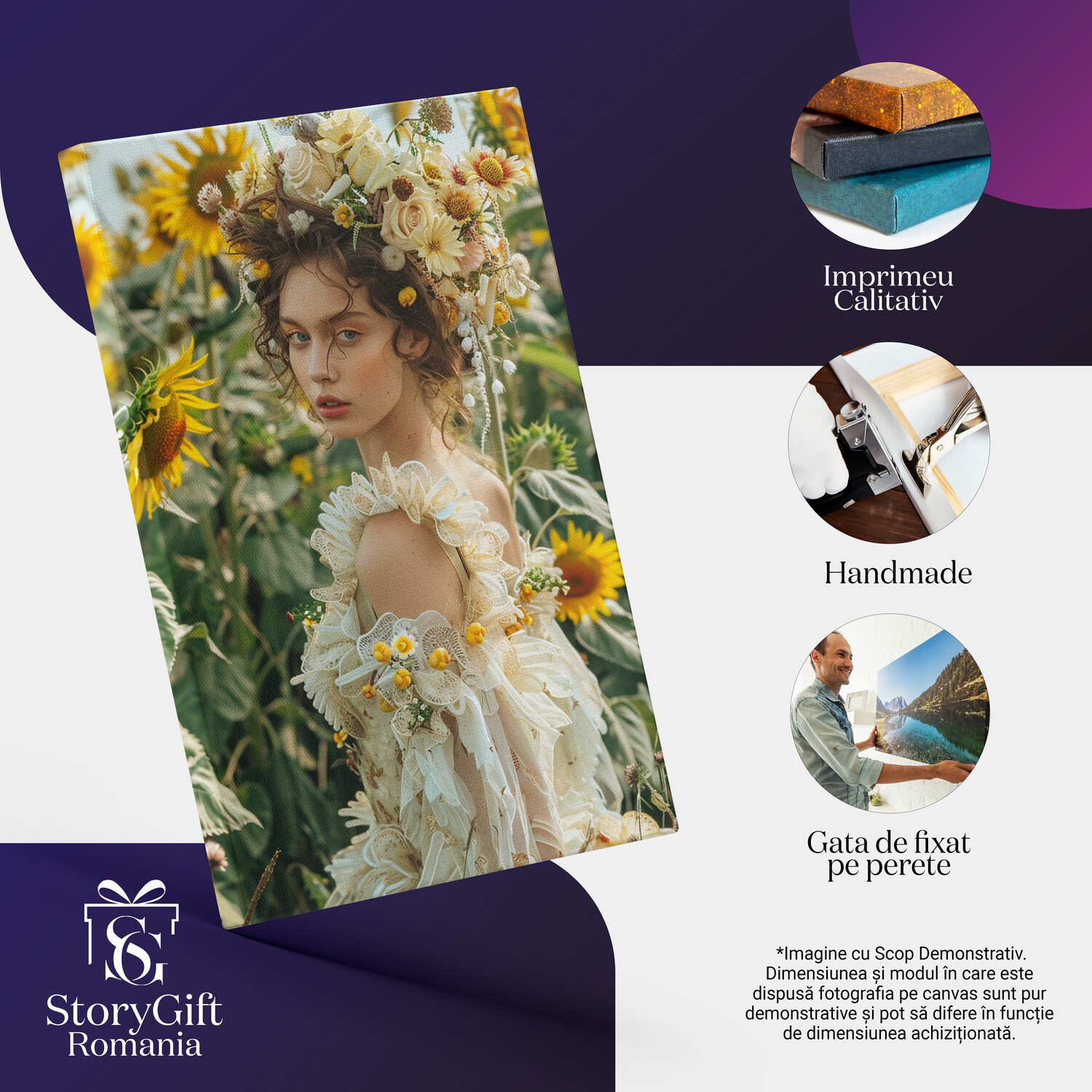 Notă importantă: Precizăm că imaginile de pe site au scop ilustrativ. Detaliile reale ale produsului pot prezenta diferențe minore față de reprezentările digitale, datorită variațiilor de culoare, mărimea tabloului și rezoluția dispozitivelor. Disponibilitatea în diverse dimensiuni ne permite să satisfacem nevoile dvs. specifice; pentru a vă asigura de alegerea potrivită, recomandăm măsurarea atentă a spațiului alocat.