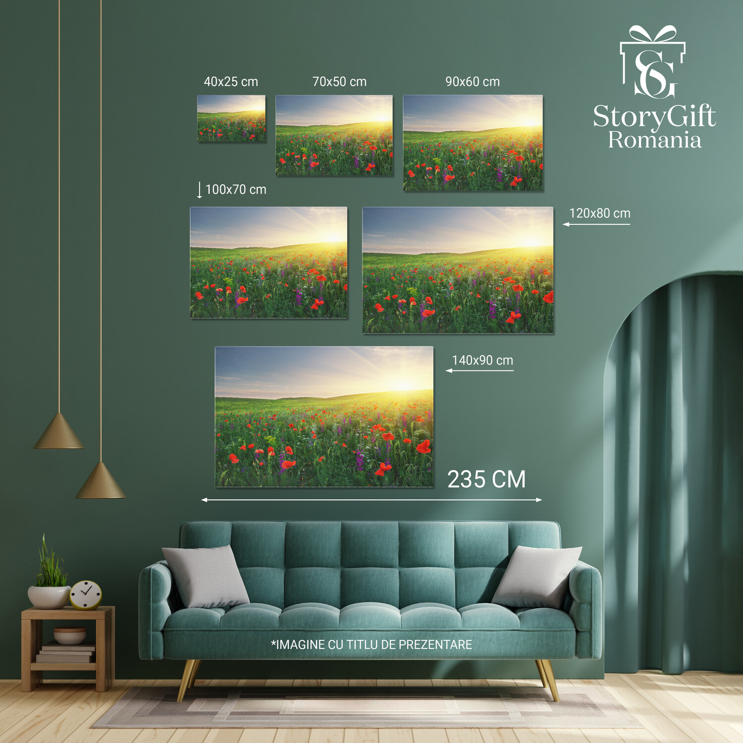 Notă importantă: Precizăm că imaginile de pe site au scop ilustrativ. Detaliile reale ale produsului pot prezenta diferențe minore față de reprezentările digitale, datorită variațiilor de culoare, mărimea tabloului și rezoluția dispozitivelor. Disponibilitatea în diverse dimensiuni ne permite să satisfacem nevoile dvs. specifice; pentru a vă asigura de alegerea potrivită, recomandăm măsurarea atentă a spațiului alocat.