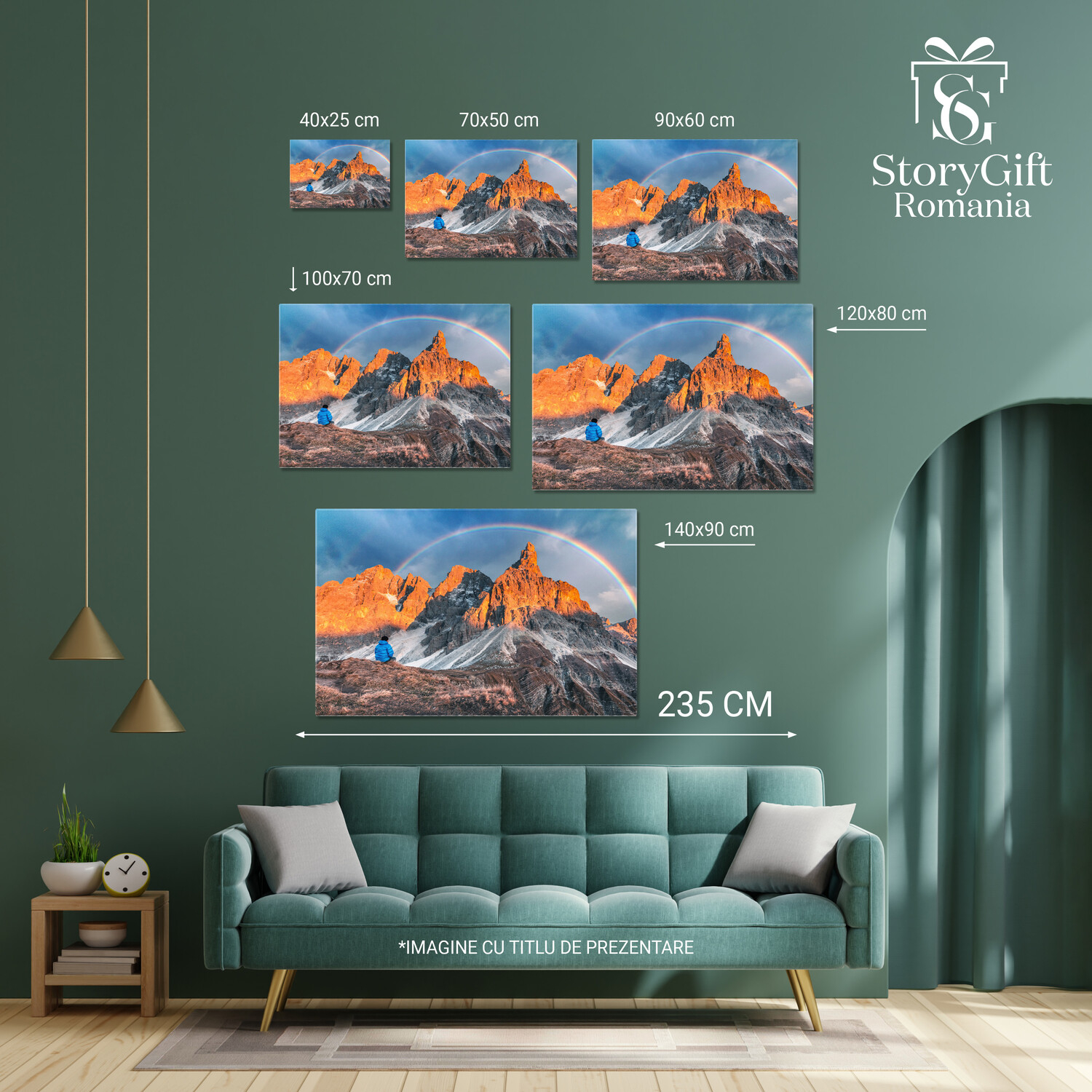 Notă importantă: Precizăm că imaginile de pe site au scop ilustrativ. Detaliile reale ale produsului pot prezenta diferențe minore față de reprezentările digitale, datorită variațiilor de culoare, mărimea tabloului și rezoluția dispozitivelor. Disponibilitatea în diverse dimensiuni ne permite să satisfacem nevoile dvs. specifice; pentru a vă asigura de alegerea potrivită, recomandăm măsurarea atentă a spațiului alocat.