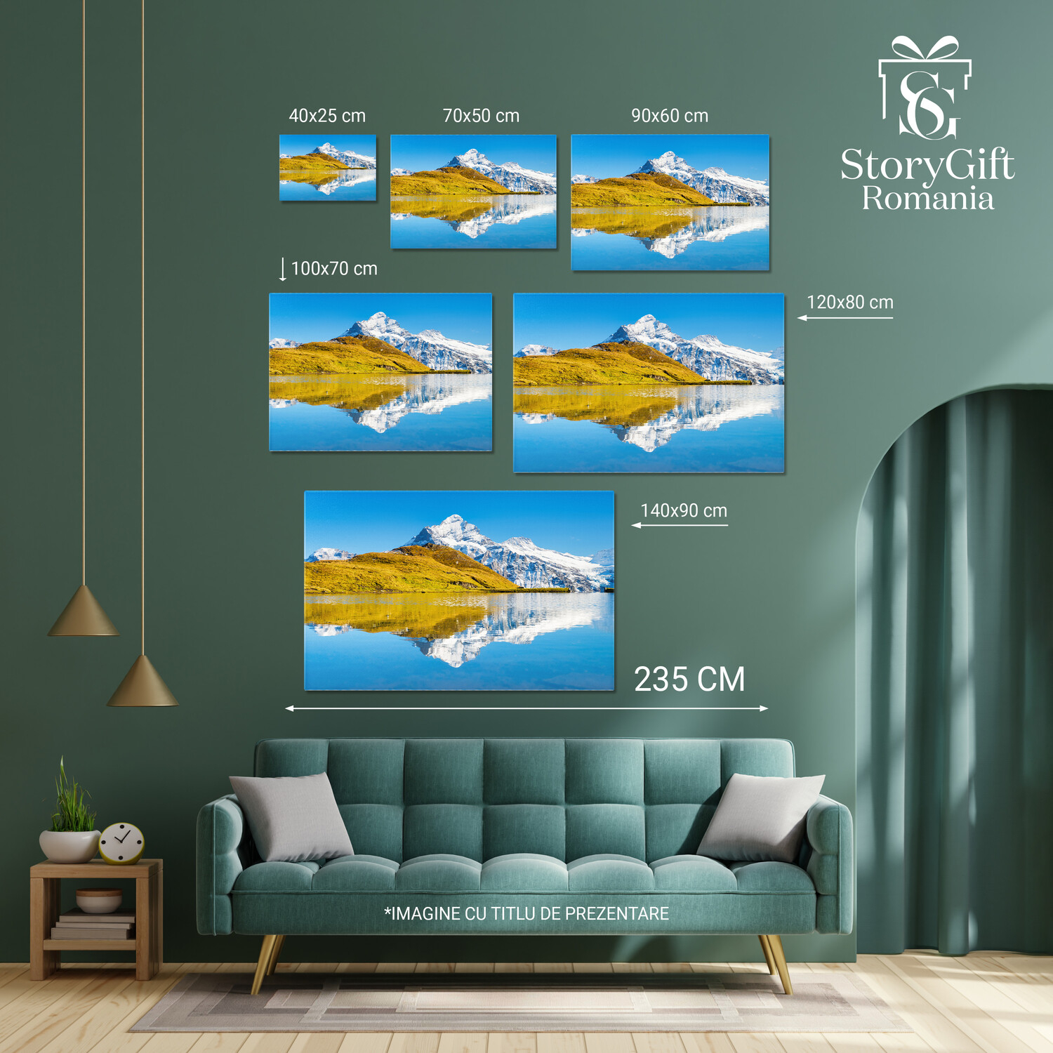 Notă importantă: Precizăm că imaginile de pe site au scop ilustrativ. Detaliile reale ale produsului pot prezenta diferențe minore față de reprezentările digitale, datorită variațiilor de culoare, mărimea tabloului și rezoluția dispozitivelor. Disponibilitatea în diverse dimensiuni ne permite să satisfacem nevoile dvs. specifice; pentru a vă asigura de alegerea potrivită, recomandăm măsurarea atentă a spațiului alocat.