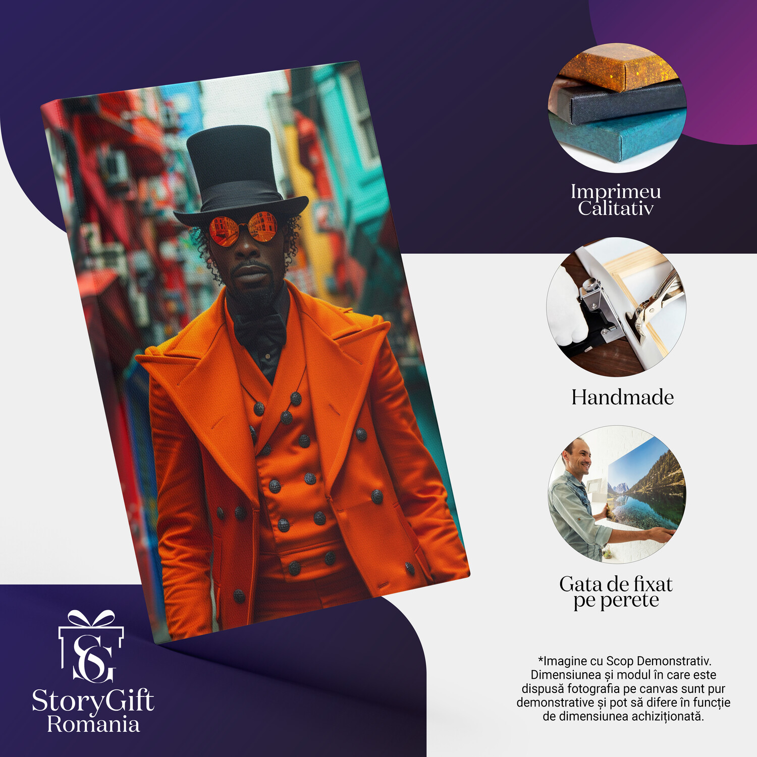 Notă importantă: Precizăm că imaginile de pe site au scop ilustrativ. Detaliile reale ale produsului pot prezenta diferențe minore față de reprezentările digitale, datorită variațiilor de culoare, mărimea tabloului și rezoluția dispozitivelor. Disponibilitatea în diverse dimensiuni ne permite să satisfacem nevoile dvs. specifice; pentru a vă asigura de alegerea potrivită, recomandăm măsurarea atentă a spațiului alocat.