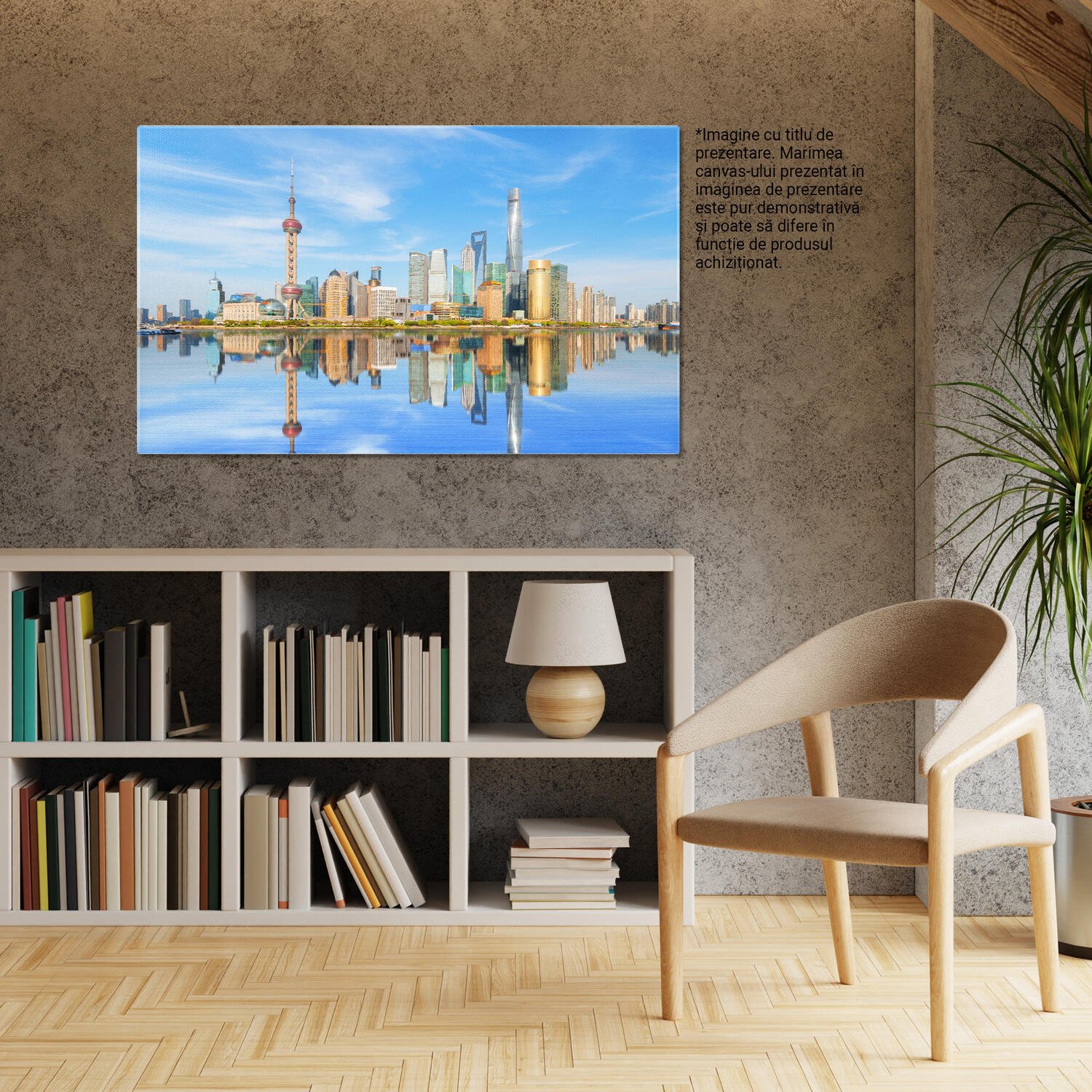 Tablou Canvas - Cerul Albastru si Arhitectura Uimitoare a Bund-ului, Shanghai: O Zi Luminata in Orasul Asiatic - Tablou Canvas Signature de la StoryGift Romania