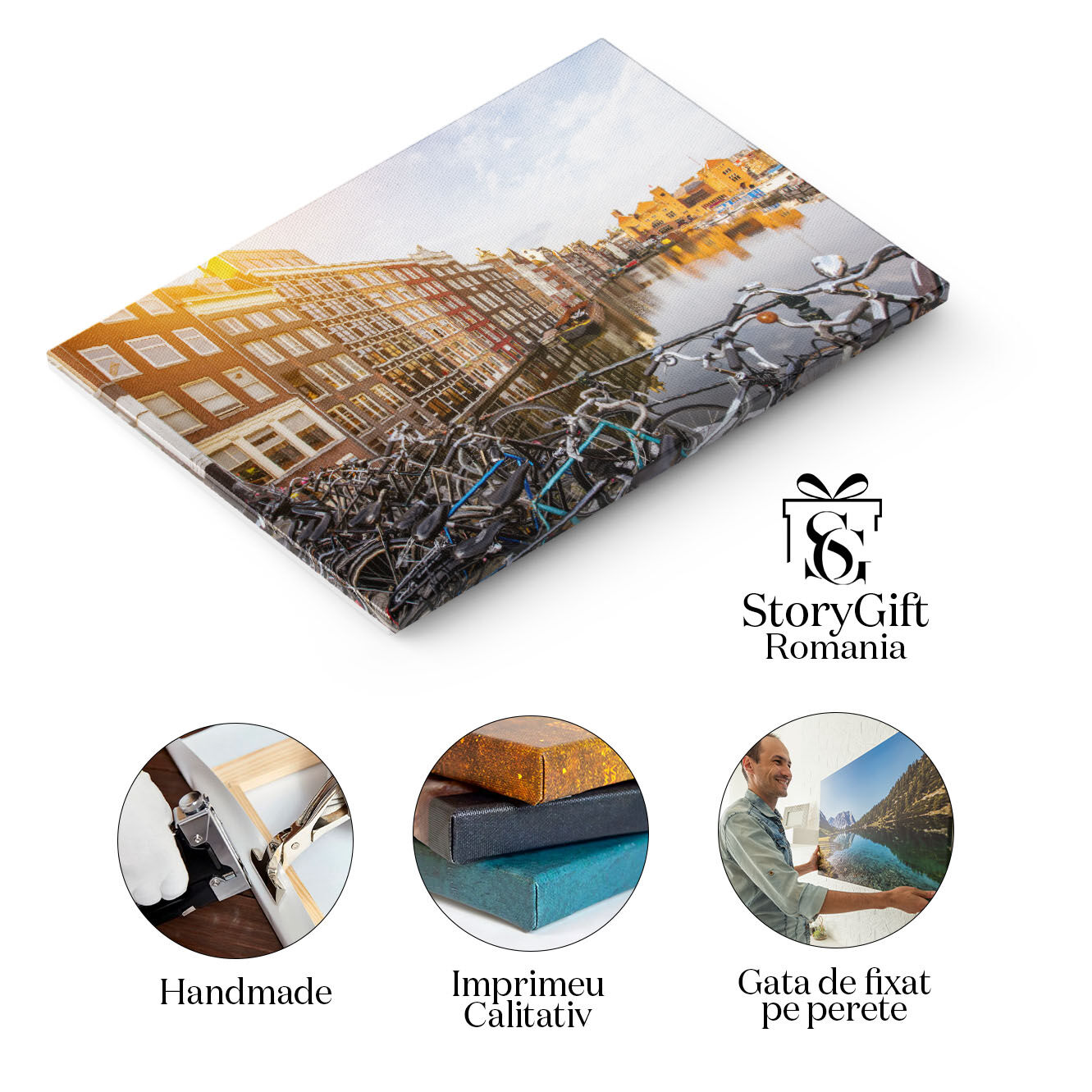 Tablou Canvas Amsterdam Peisaj Urban cu Canale si Cladiri Traditionale, amsterdam, city, netherlands, canal, dutch 438 40x25CM