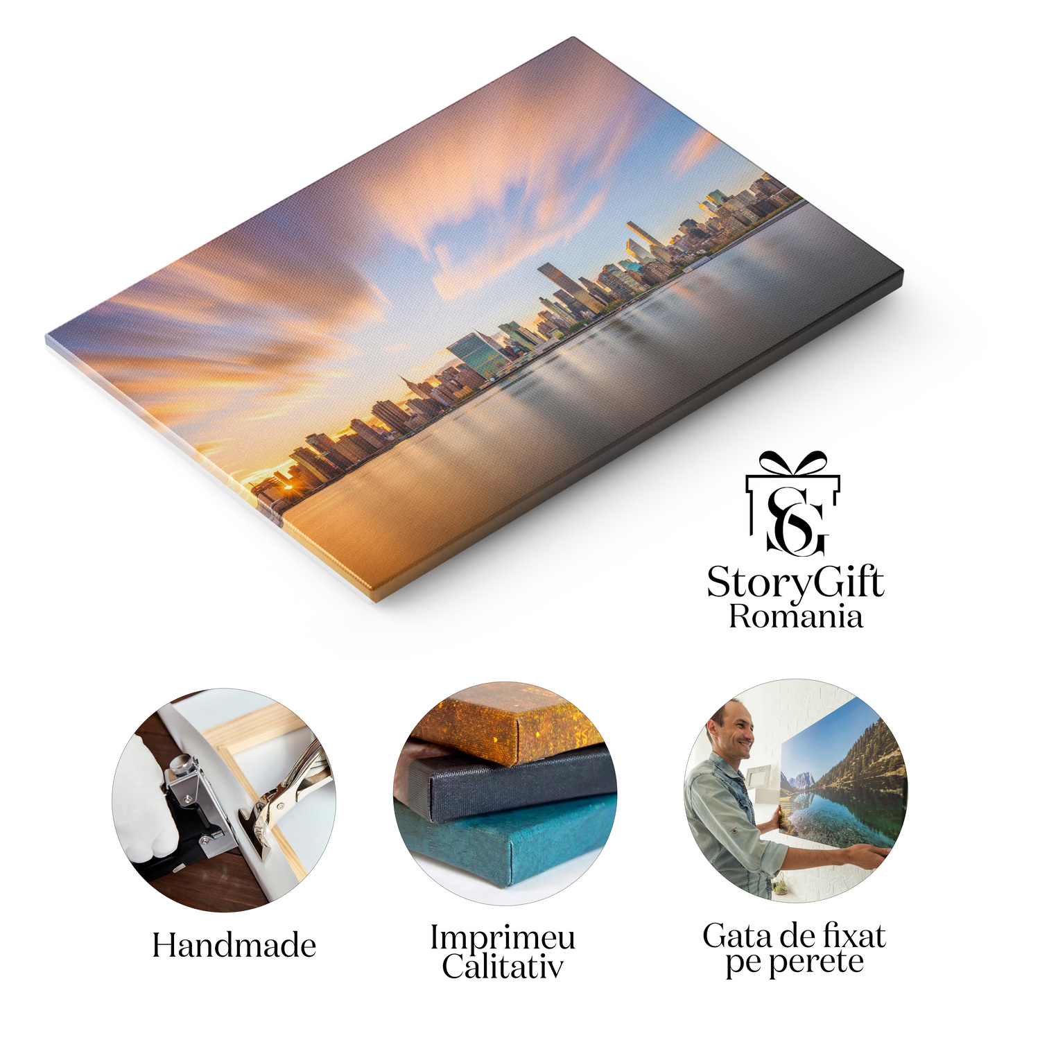 Tablou Canvas: Privire la New York - Linia Orizontului Manhattanului in Lumina Apusului - Tablou Canvas Signature de la StoryGift Romania