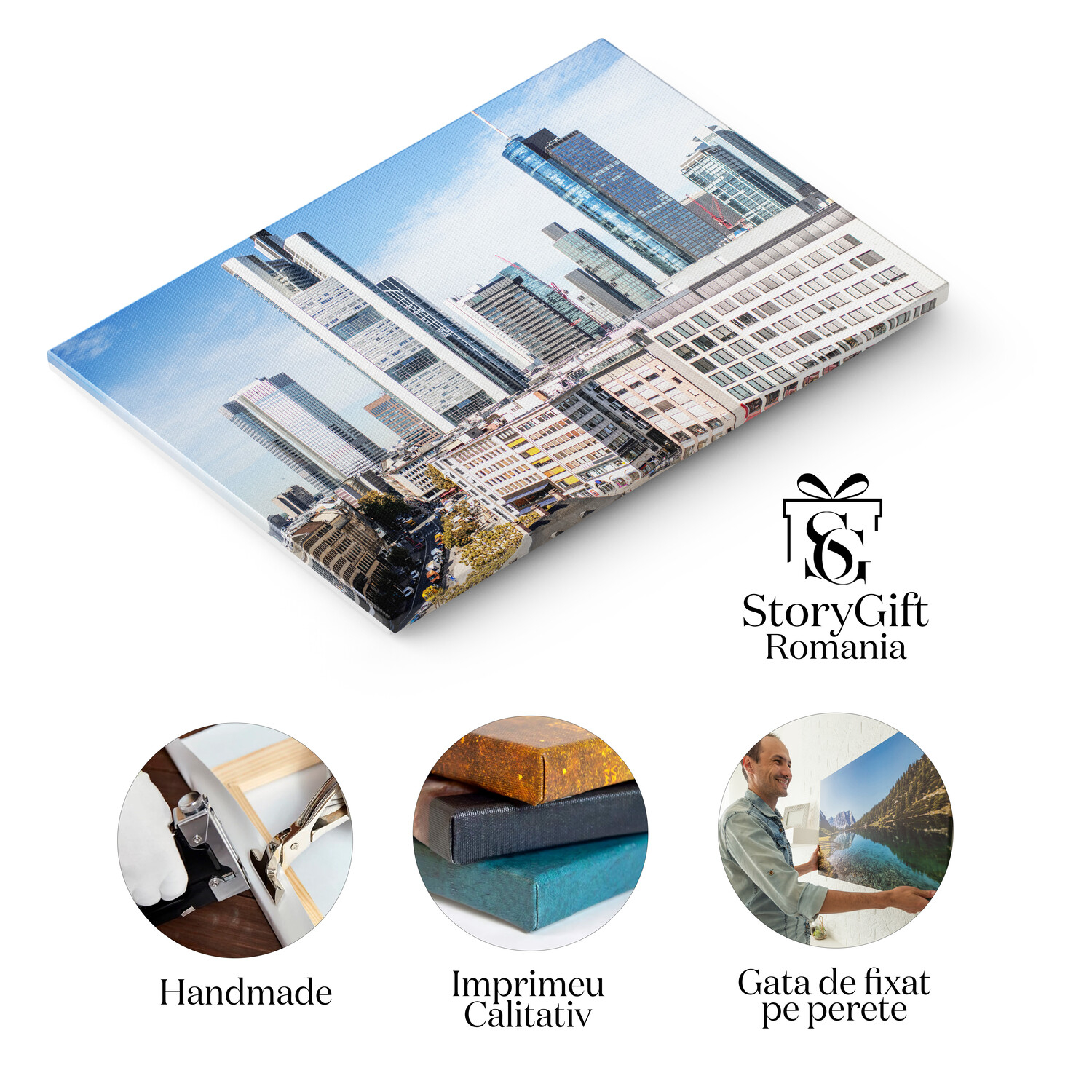 Construcția meticuloasă a tabloului evidențiază măiestria artizanală. Fiecare panză este manual tensionată pe un cadru de lemn, având colțurile rafinat finisate, oferind durabilitate și eleganță inconfundabilă.Când vine vorba de livrare, nu compromitem. Fiecare tablou este ambalat meticulos în protecții de lux și carton rigid, asigurând că tabloul ajunge în perfectă integritate la destinație.