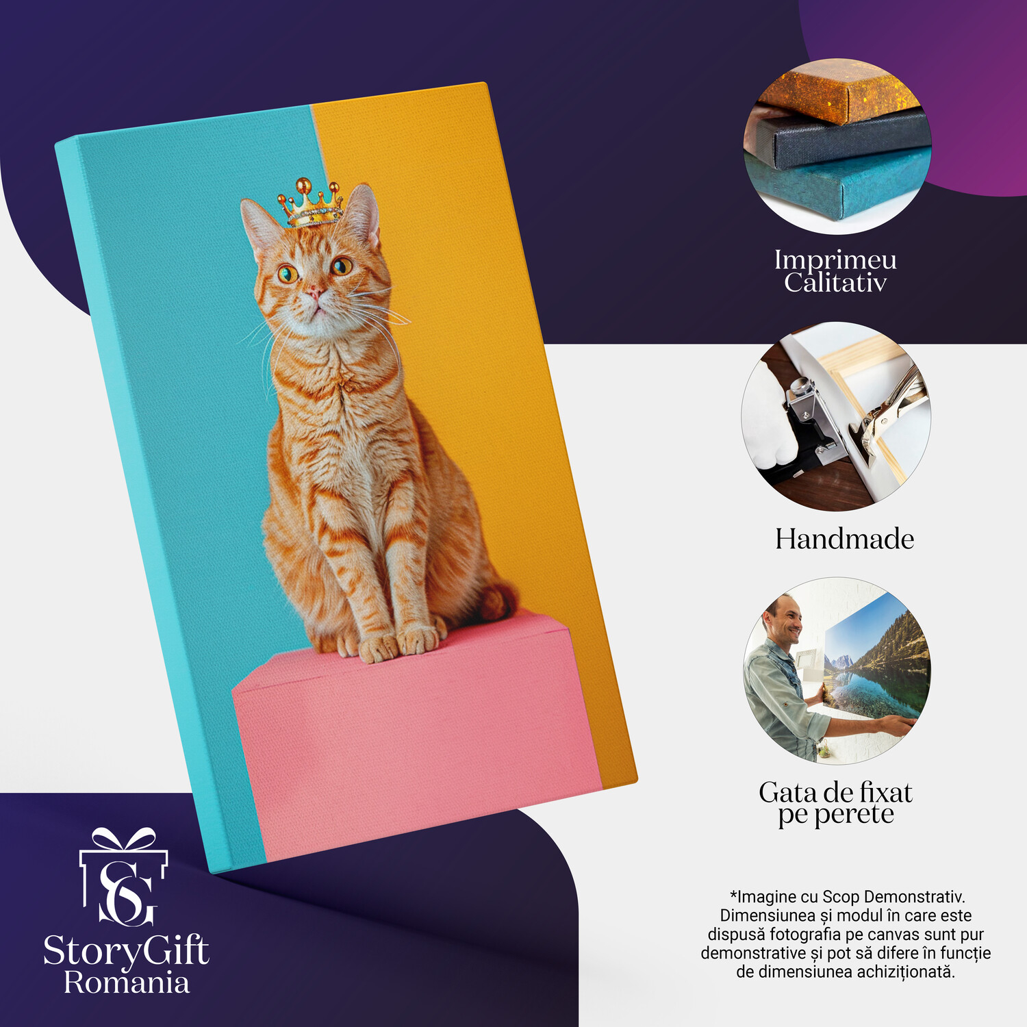 Notă importantă: Precizăm că imaginile de pe site au scop ilustrativ. Detaliile reale ale produsului pot prezenta diferențe minore față de reprezentările digitale, datorită variațiilor de culoare, mărimea tabloului și rezoluția dispozitivelor. Disponibilitatea în diverse dimensiuni ne permite să satisfacem nevoile dvs. specifice; pentru a vă asigura de alegerea potrivită, recomandăm măsurarea atentă a spațiului alocat.