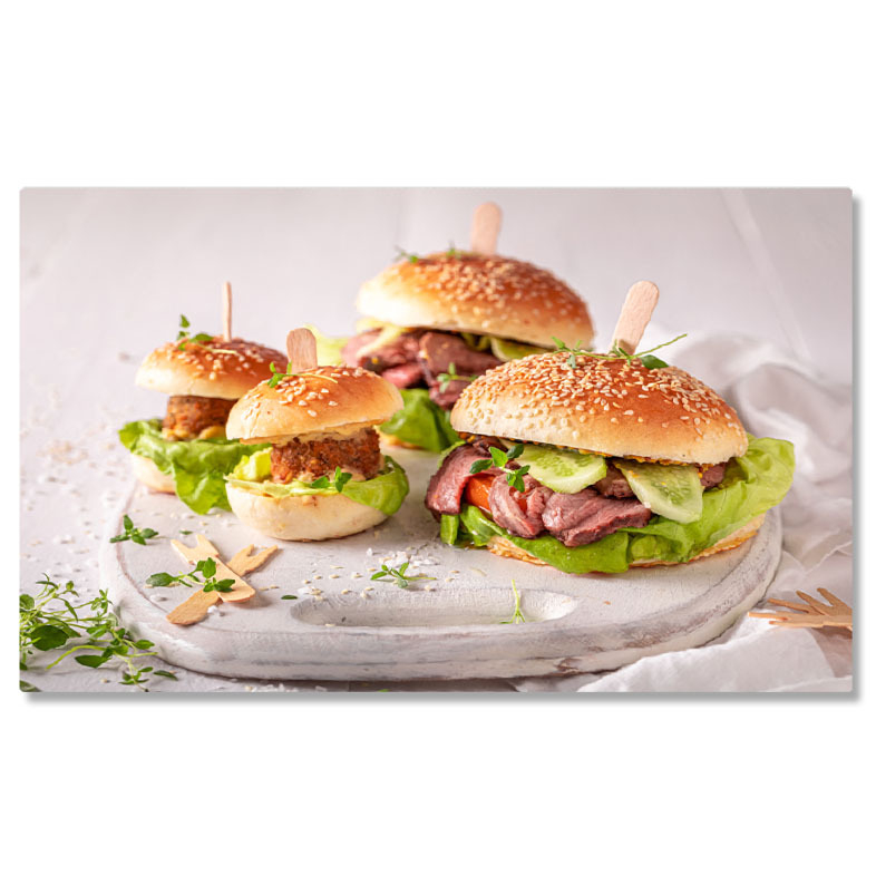 Tablou Canvas Hamburger Gustos, sandwich, burger, carne de vita, chifla, rosie 4437 40x25CM