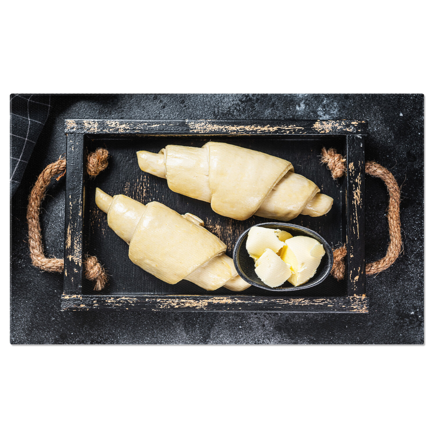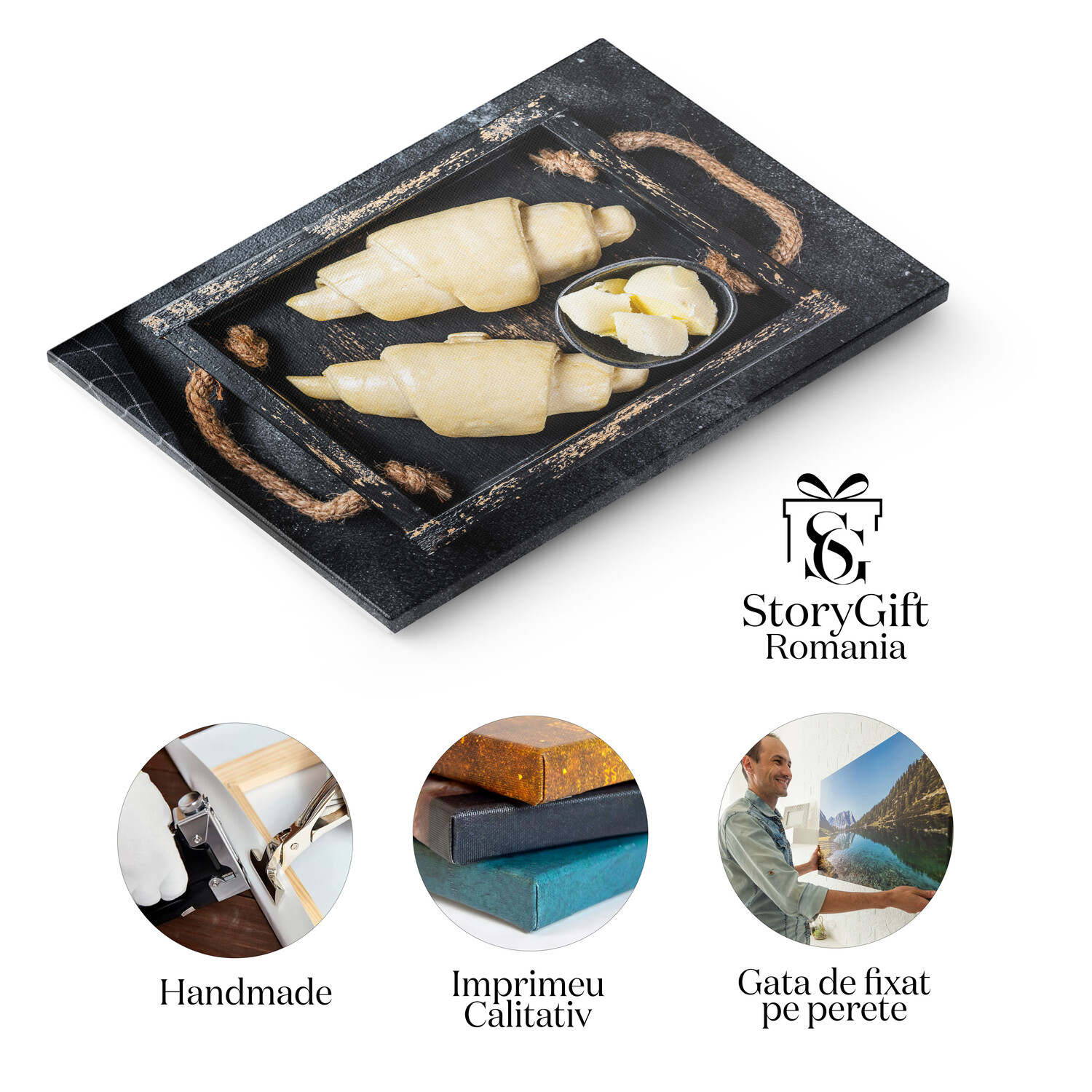 Tablou Canvas - Delicii Matinale: Croissant-uri si Aluat Proaspat pe Masa de Taiat - Tablou Canvas Signature de la StoryGift Romania