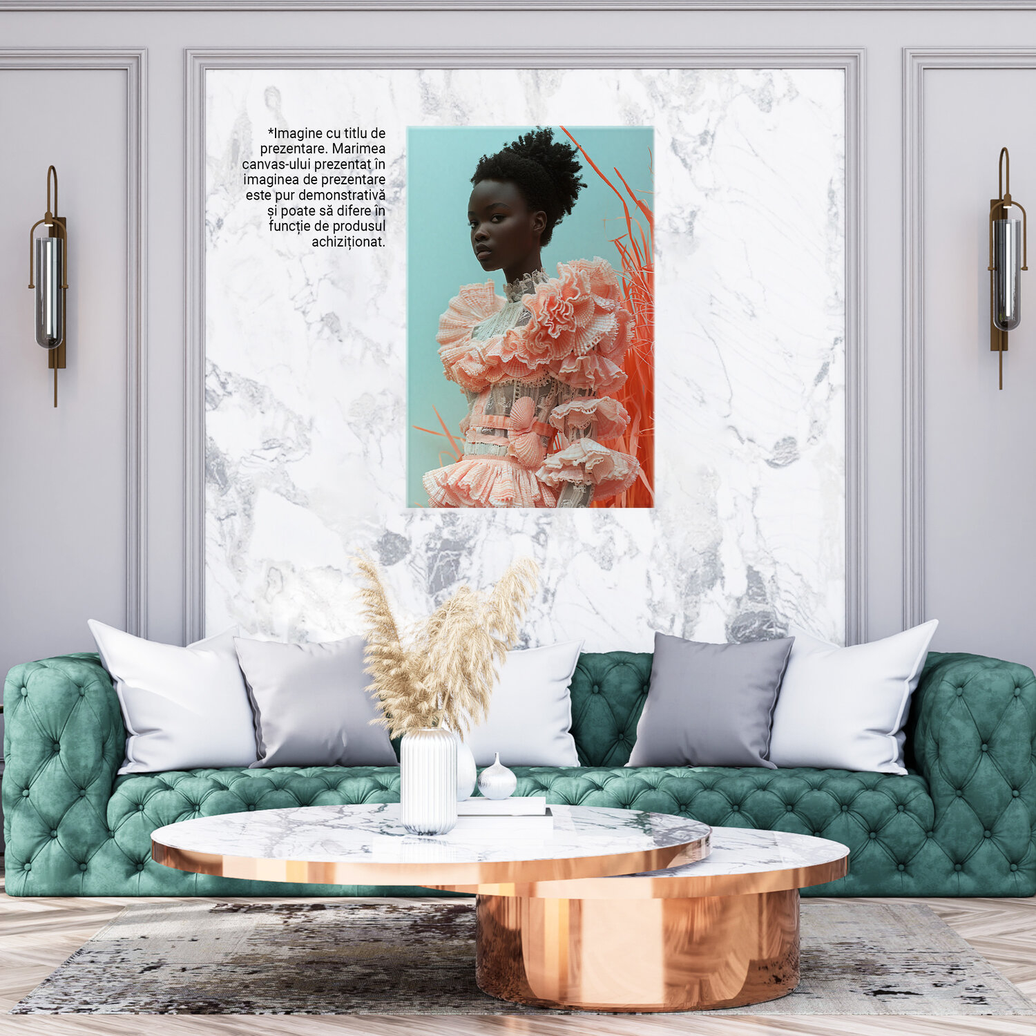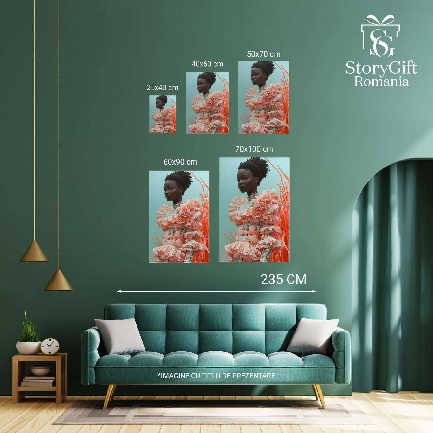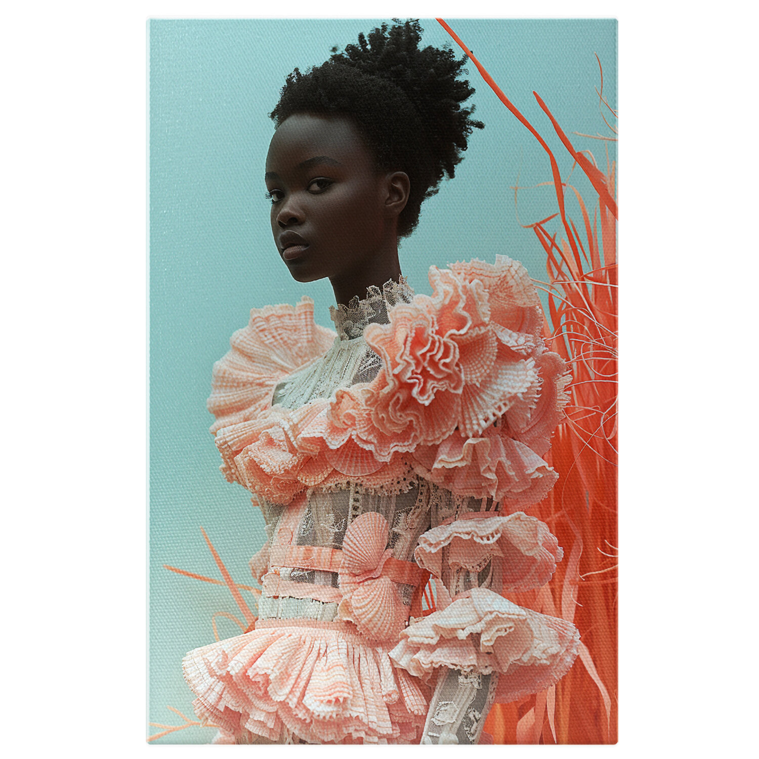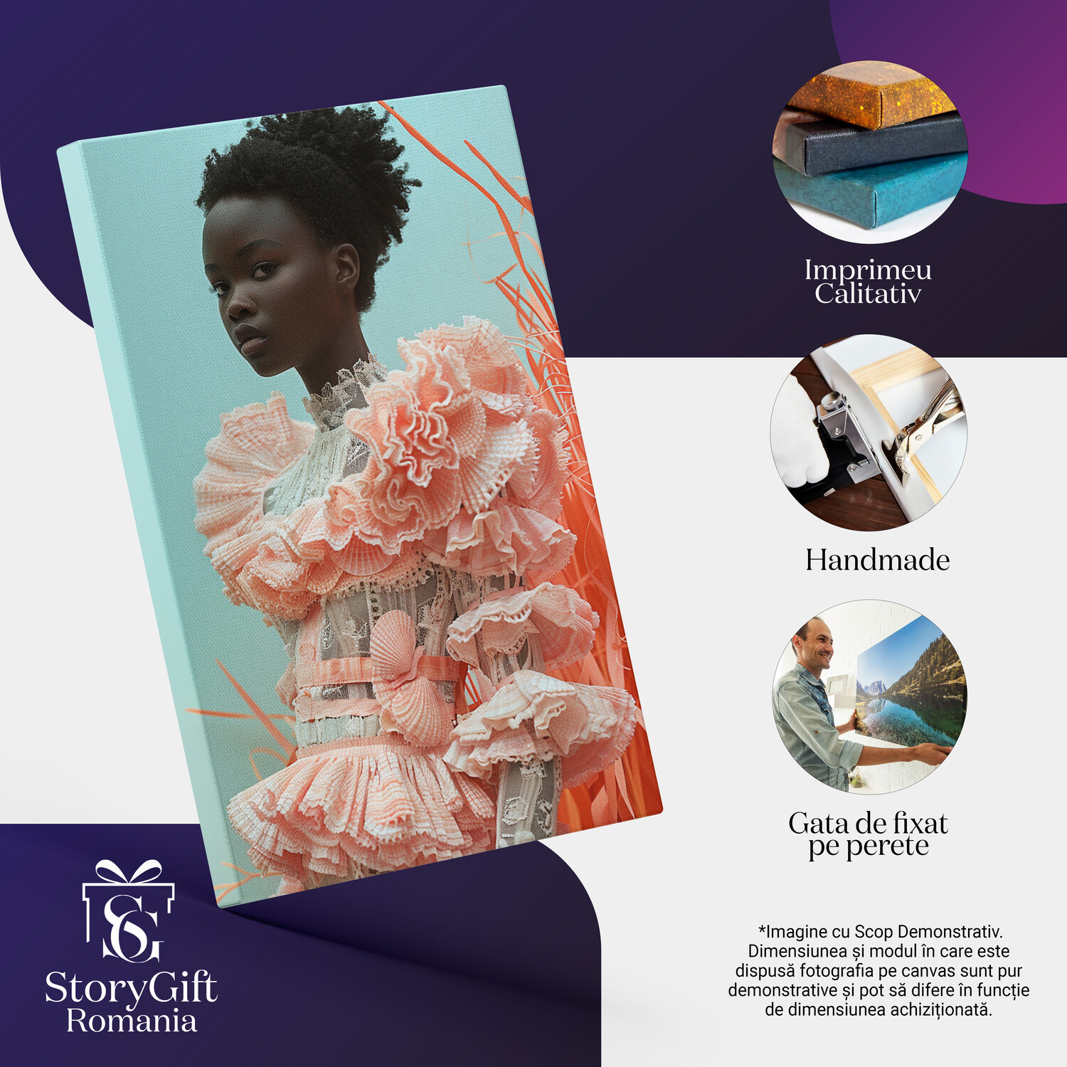 Tablou Canvas Domnisoara cu Scoici Textile pe rochia Roz Volane si Volum Viata in Armonie , Pictura Digitala - Tablou Canvas Signature de la StoryGift Romania