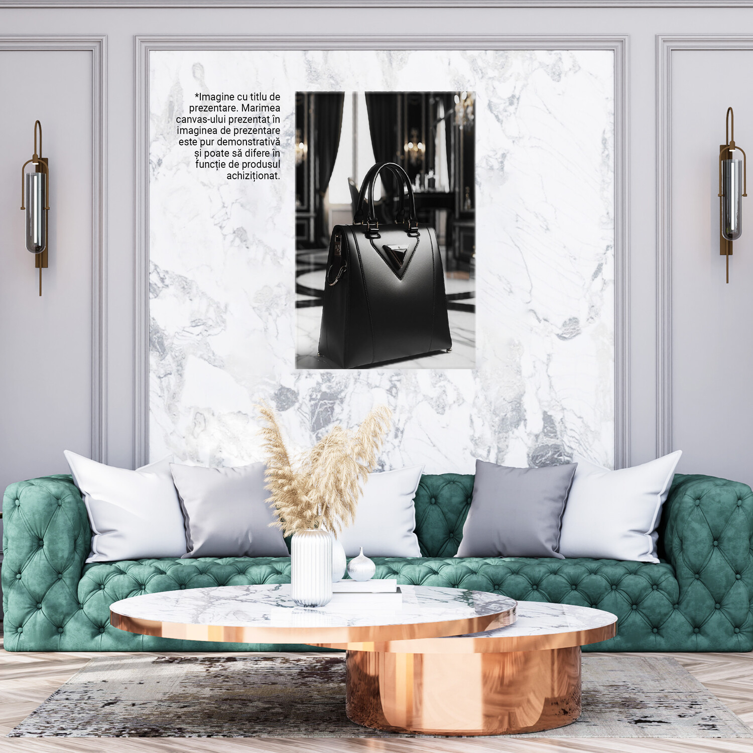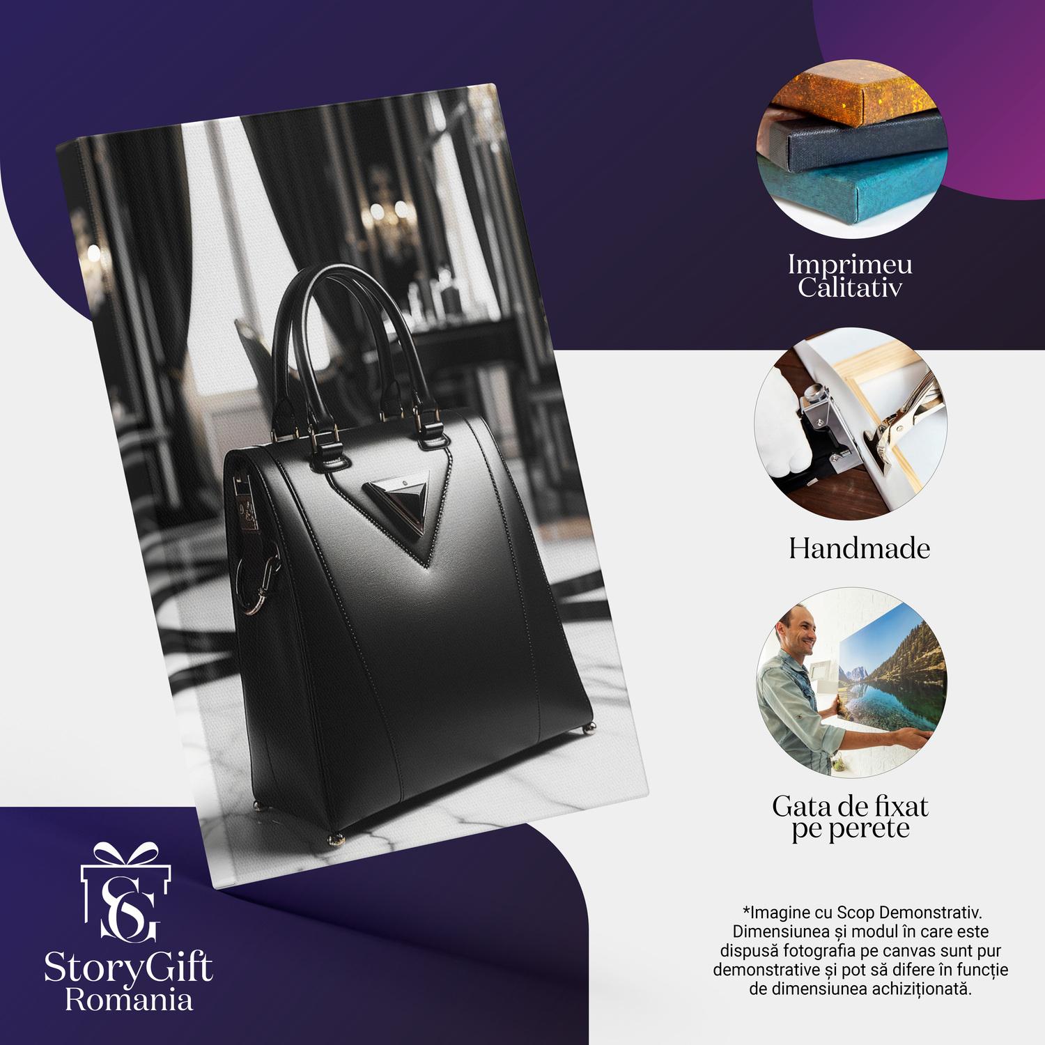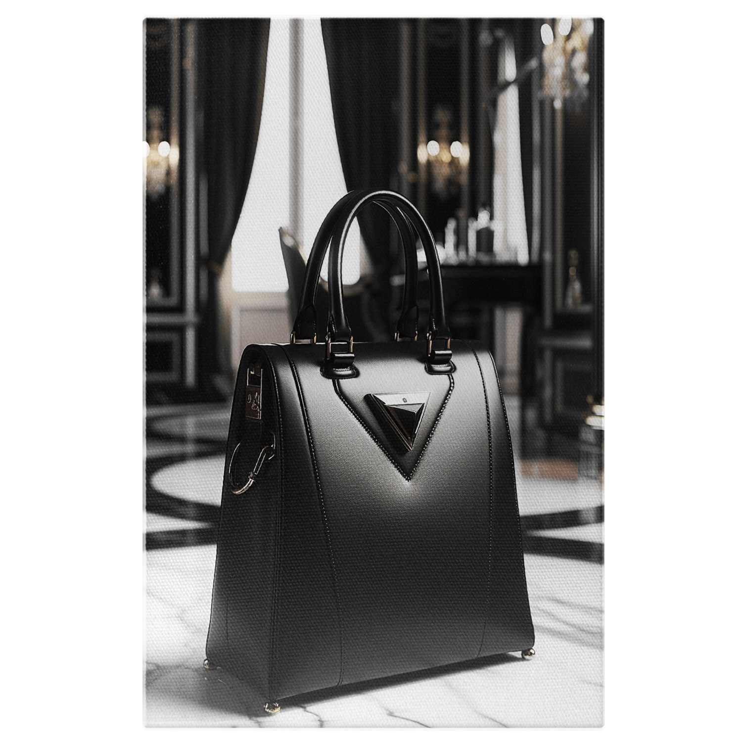Tablou Canvas Geanta de Culoare Negre Simpla si Incapatoare pentru Dama cu un Triunghi Negru pe ea , Pictura Digitala - Tablou Canvas Signature de la StoryGift Romania