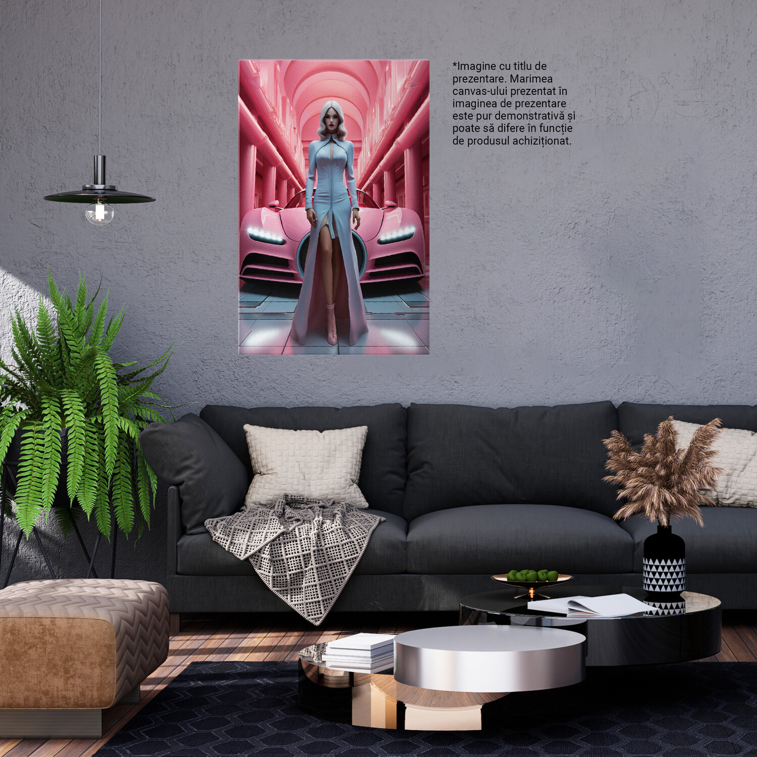 Tablou Canvas: Glamour si Adrenalina O Prezenta Stralucitoare In Fata Bolidului Lux in Hol Pictura Digitala 100x70CM