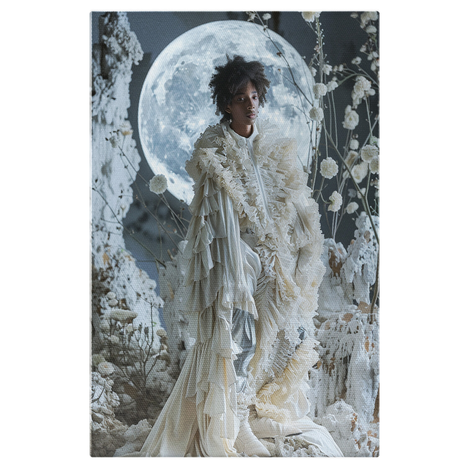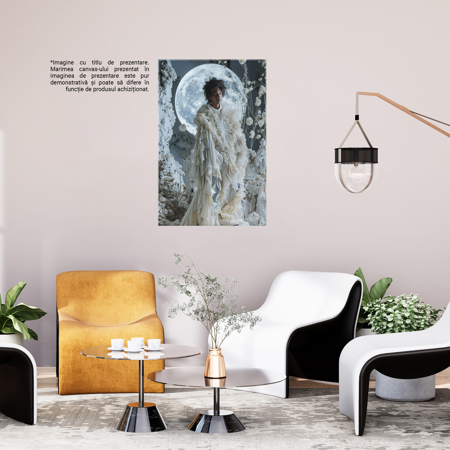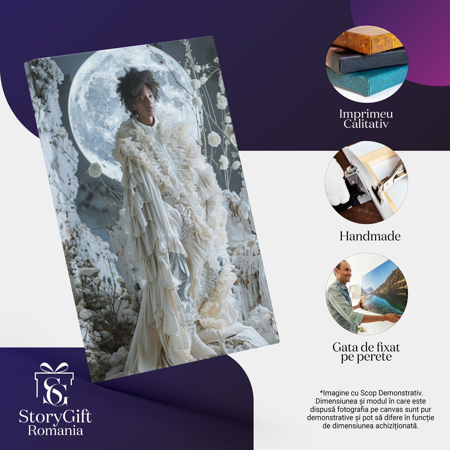 Tablou Canvas: Model Masculin in Nuante de Alb, Rochie cu Pluri si Luna Plina- Contraste Tonale Pictura Digitala - Tablou Canvas Signature de la StoryGift Romania
