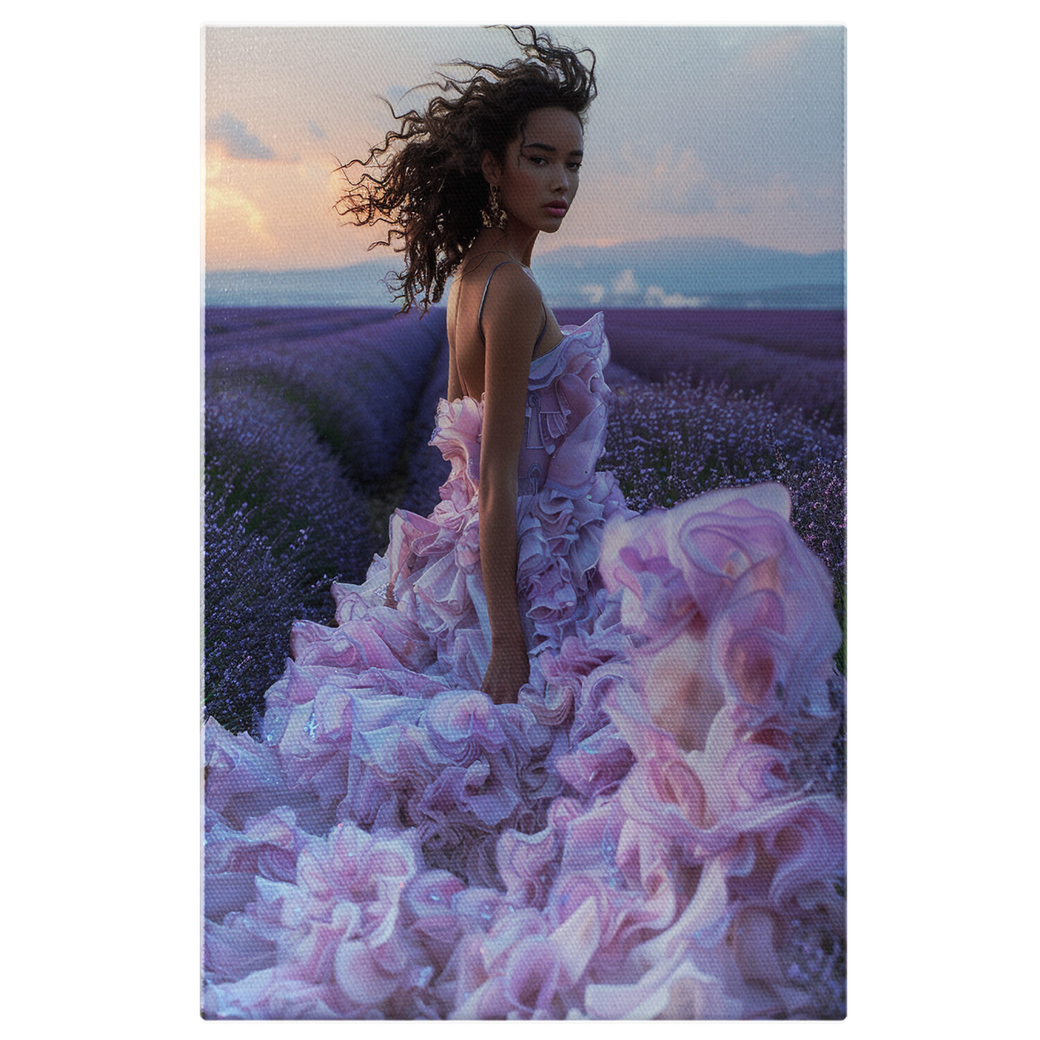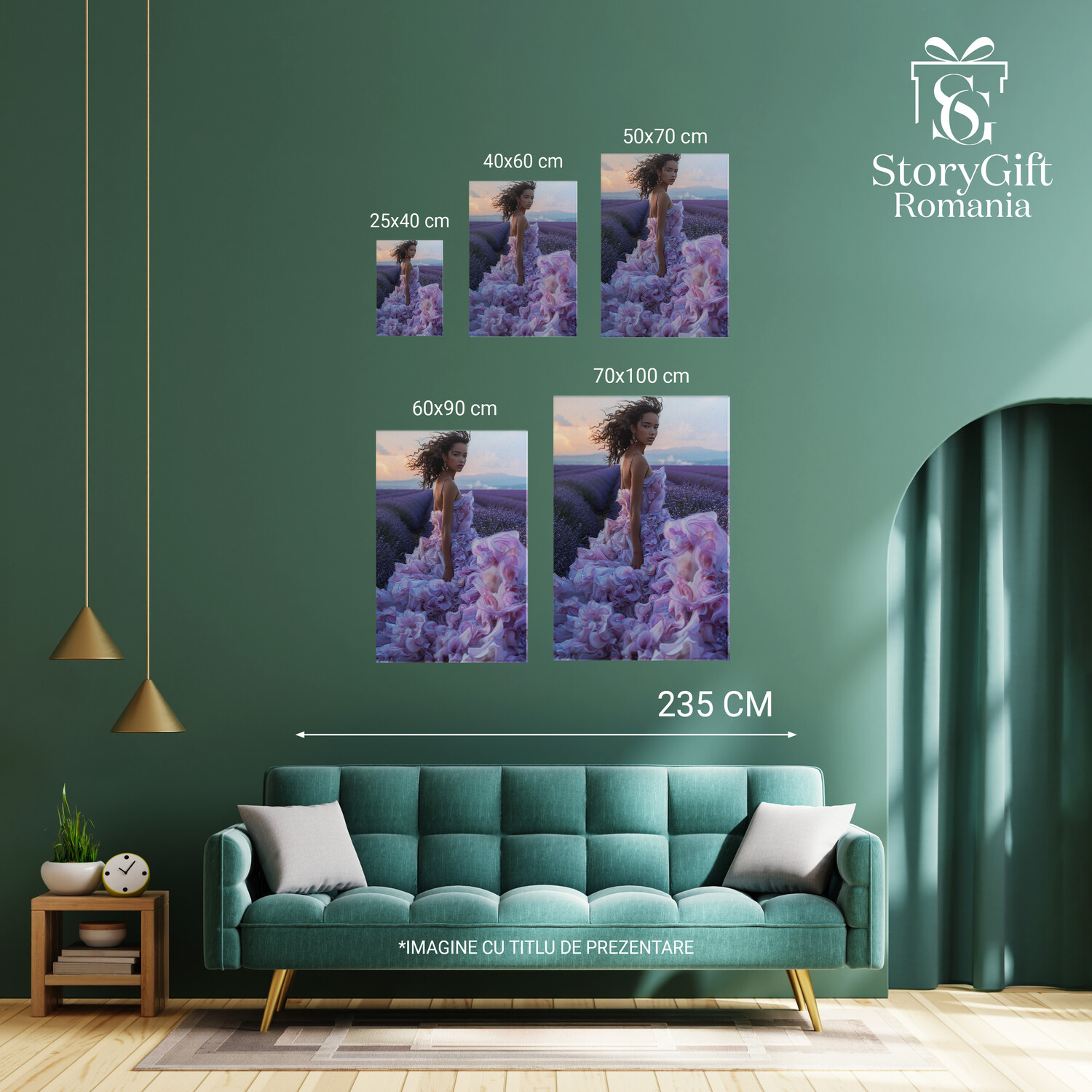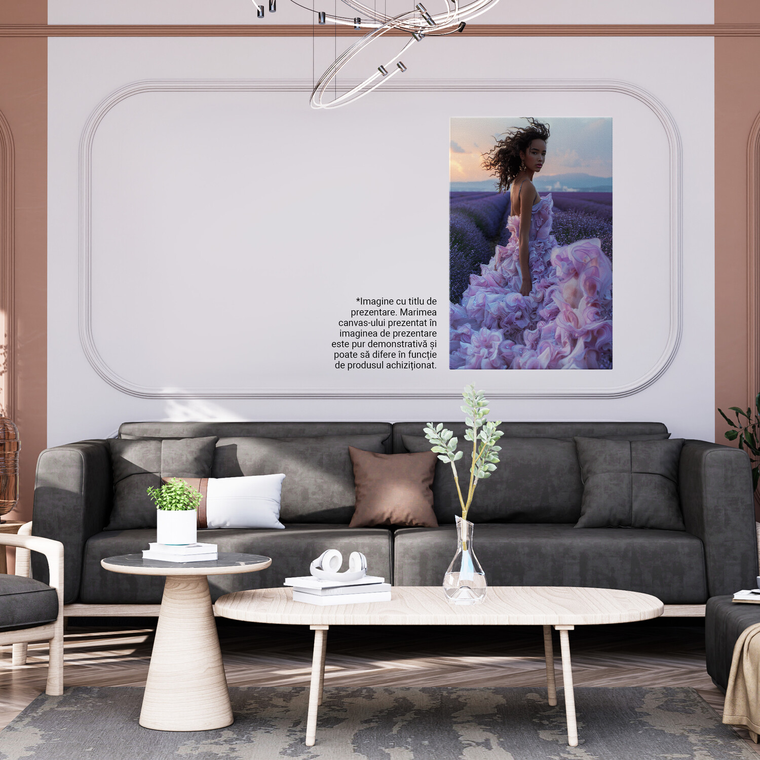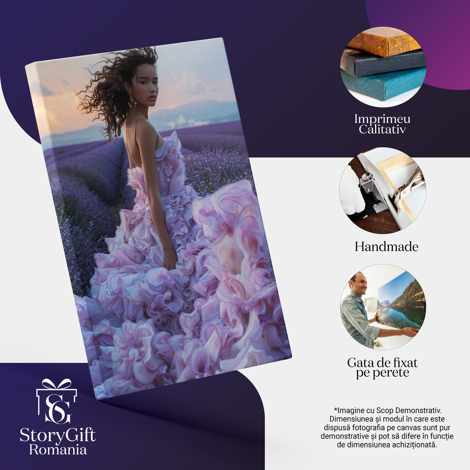 Tablou Canvas: Rochia mov a fetei ce continua peisajul lavandei - Nuante de mov Pictura Digitala - Tablou Canvas Signature de la StoryGift Romania