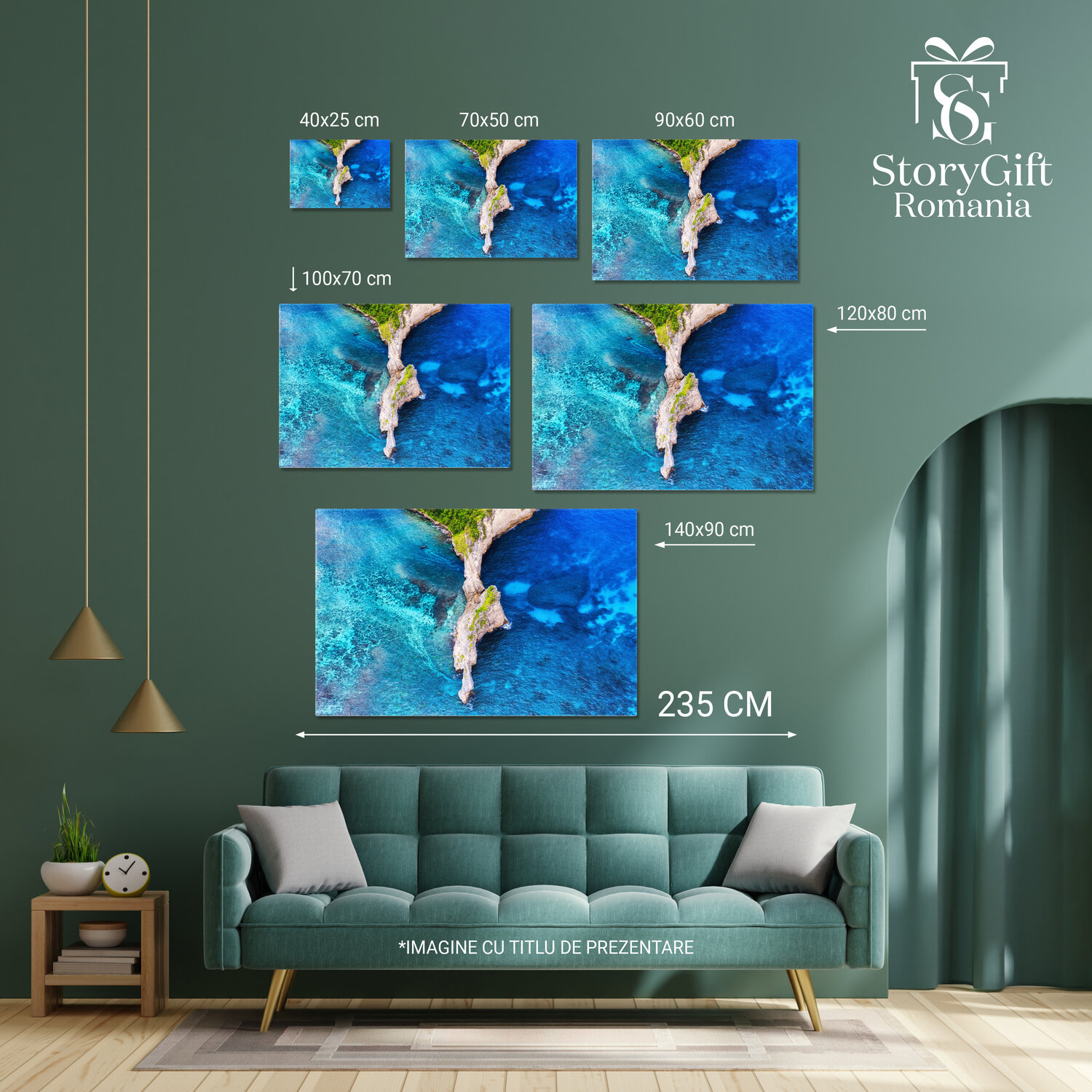 Notă importantă: Precizăm că imaginile de pe site au scop ilustrativ. Detaliile reale ale produsului pot prezenta diferențe minore față de reprezentările digitale, datorită variațiilor de culoare, mărimea tabloului și rezoluția dispozitivelor. Disponibilitatea în diverse dimensiuni ne permite să satisfacem nevoile dvs. specifice; pentru a vă asigura de alegerea potrivită, recomandăm măsurarea atentă a spațiului alocat.
