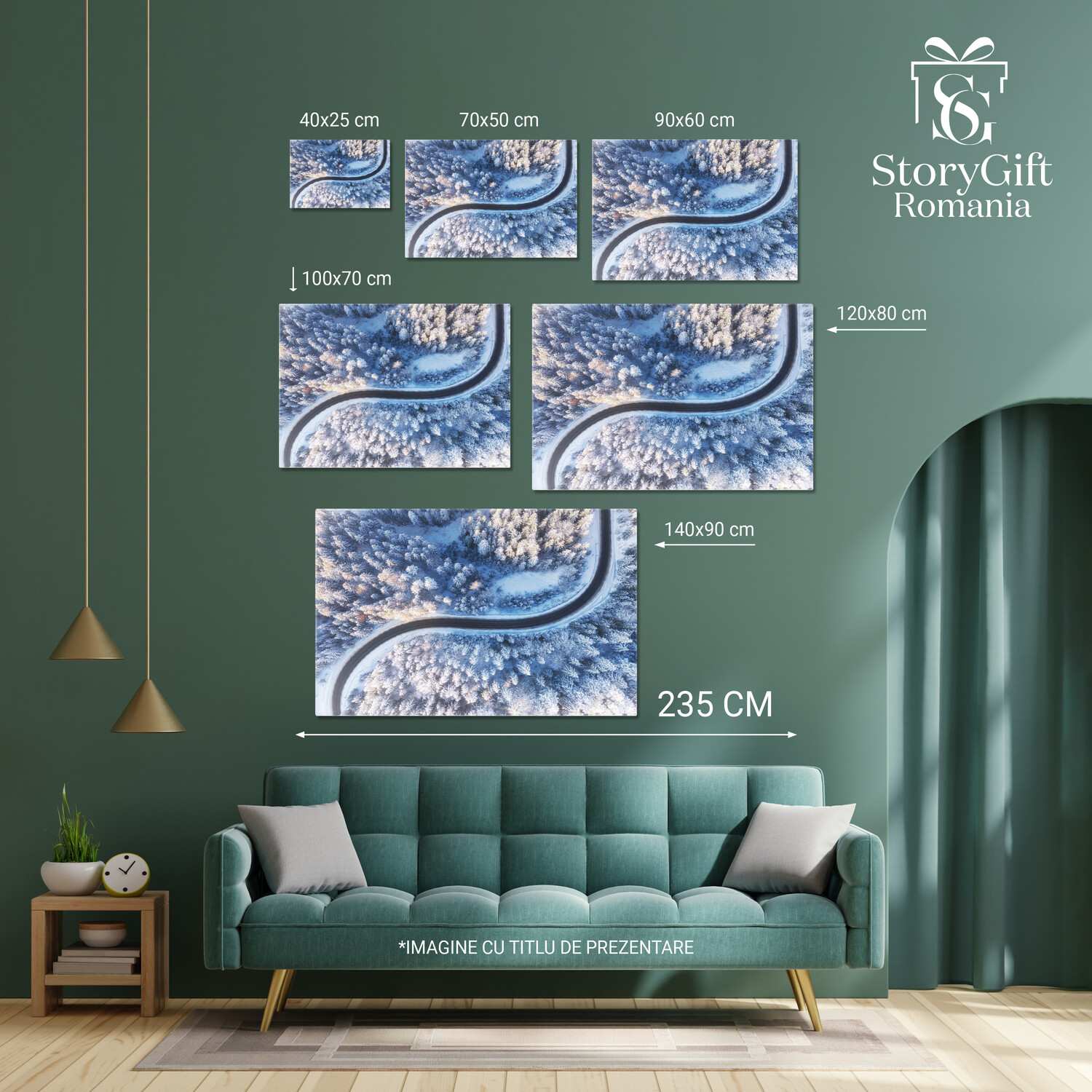 Notă importantă: Precizăm că imaginile de pe site au scop ilustrativ. Detaliile reale ale produsului pot prezenta diferențe minore față de reprezentările digitale, datorită variațiilor de culoare, mărimea tabloului și rezoluția dispozitivelor. Disponibilitatea în diverse dimensiuni ne permite să satisfacem nevoile dvs. specifice; pentru a vă asigura de alegerea potrivită, recomandăm măsurarea atentă a spațiului alocat.
