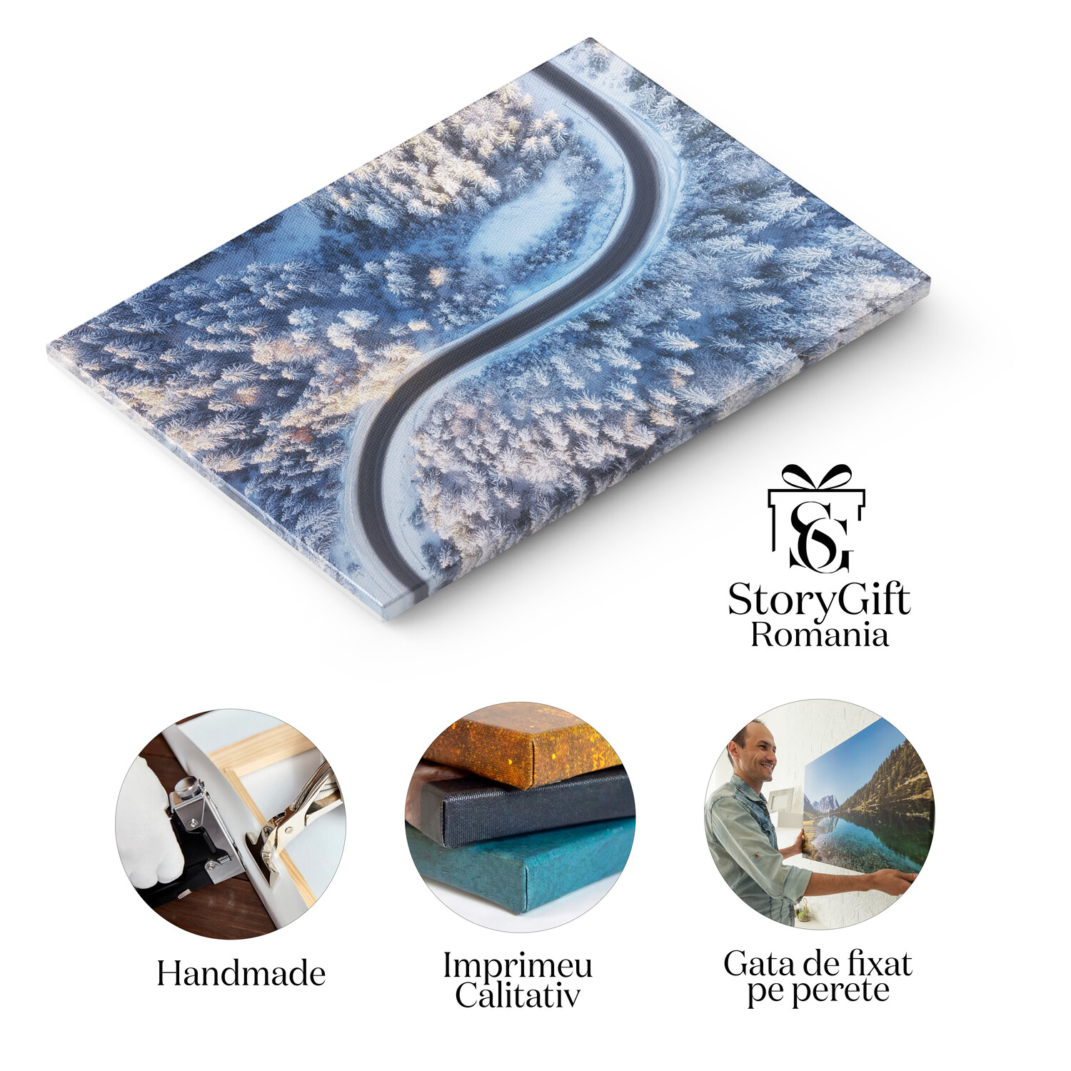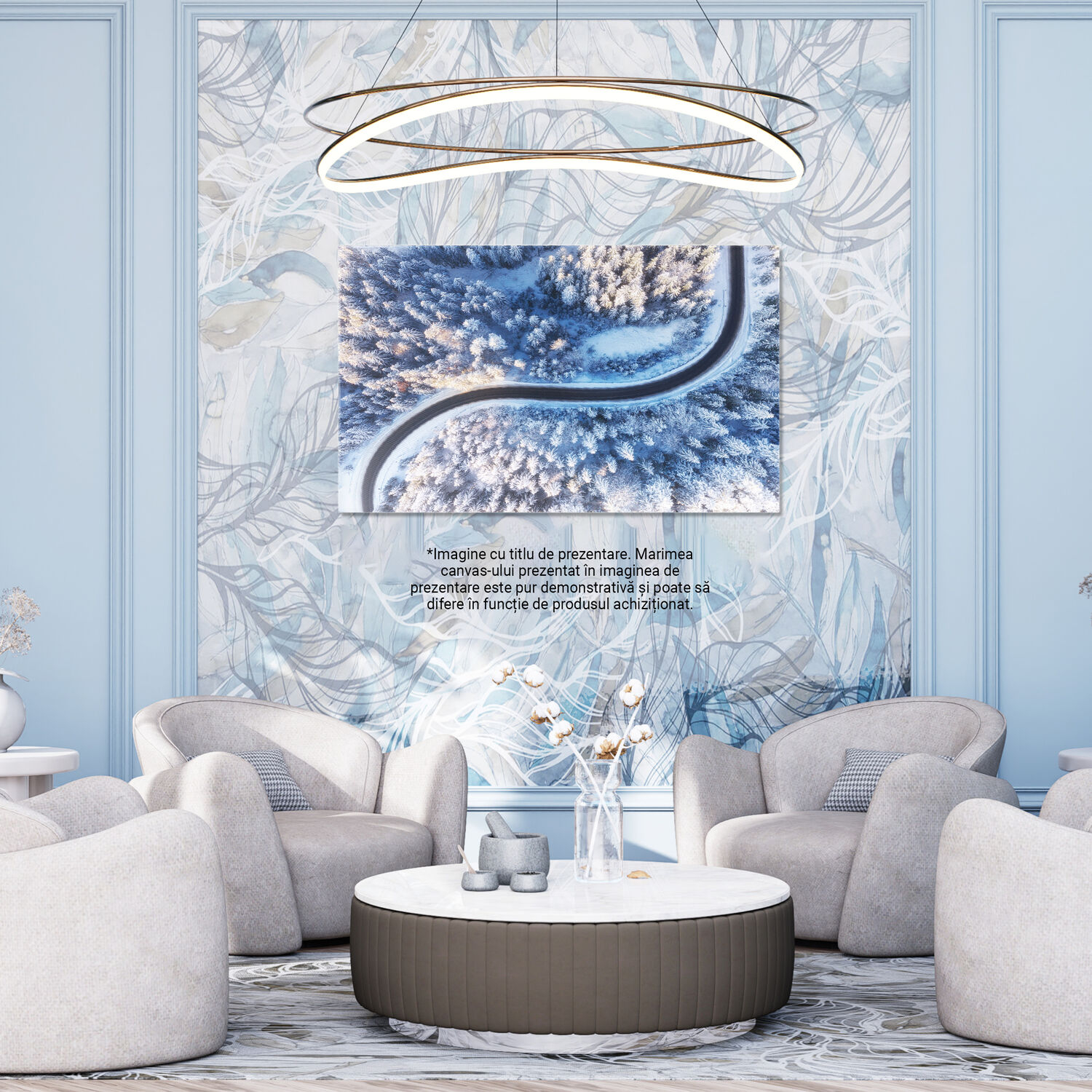 Tablou Canvas Drum si Padure de Iarna din Aer, iarna, padure, drum, peisaj, zapada - Tablou Canvas Signature de la StoryGift Romania