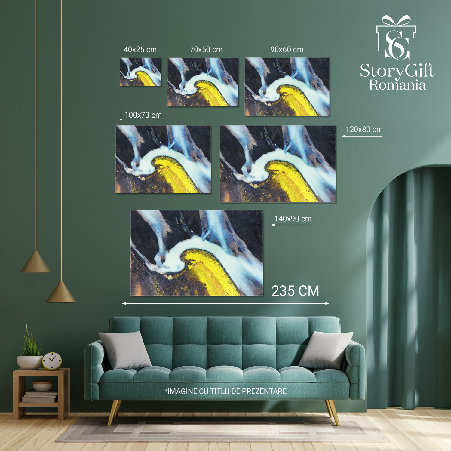 Notă importantă: Precizăm că imaginile de pe site au scop ilustrativ. Detaliile reale ale produsului pot prezenta diferențe minore față de reprezentările digitale, datorită variațiilor de culoare, mărimea tabloului și rezoluția dispozitivelor. Disponibilitatea în diverse dimensiuni ne permite să satisfacem nevoile dvs. specifice; pentru a vă asigura de alegerea potrivită, recomandăm măsurarea atentă a spațiului alocat.