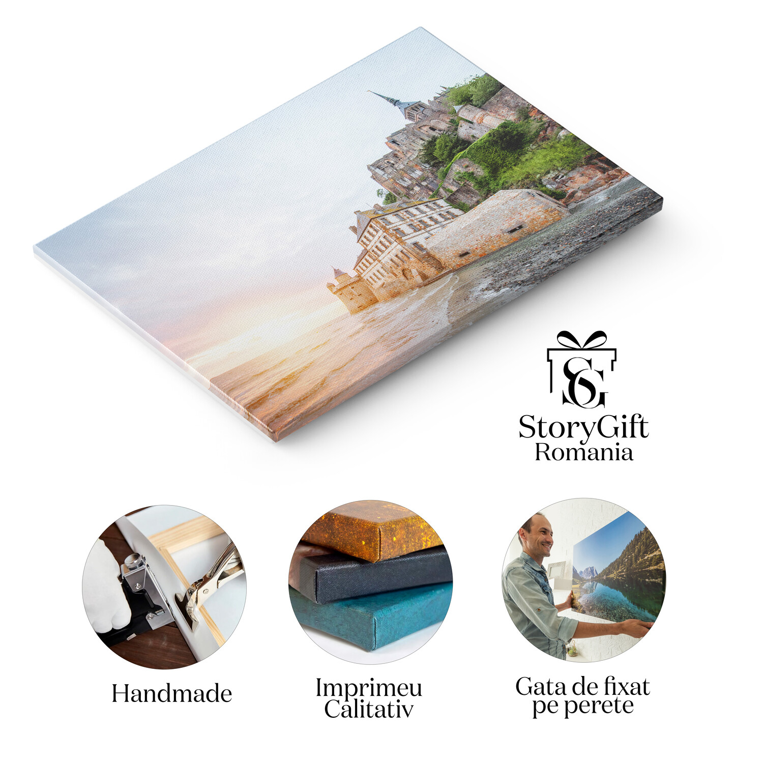Tablou Canvas: Mont Saint-Michel in Apus - Poveste si Reflectii in Franta - Tablou Canvas Signature de la StoryGift Romania