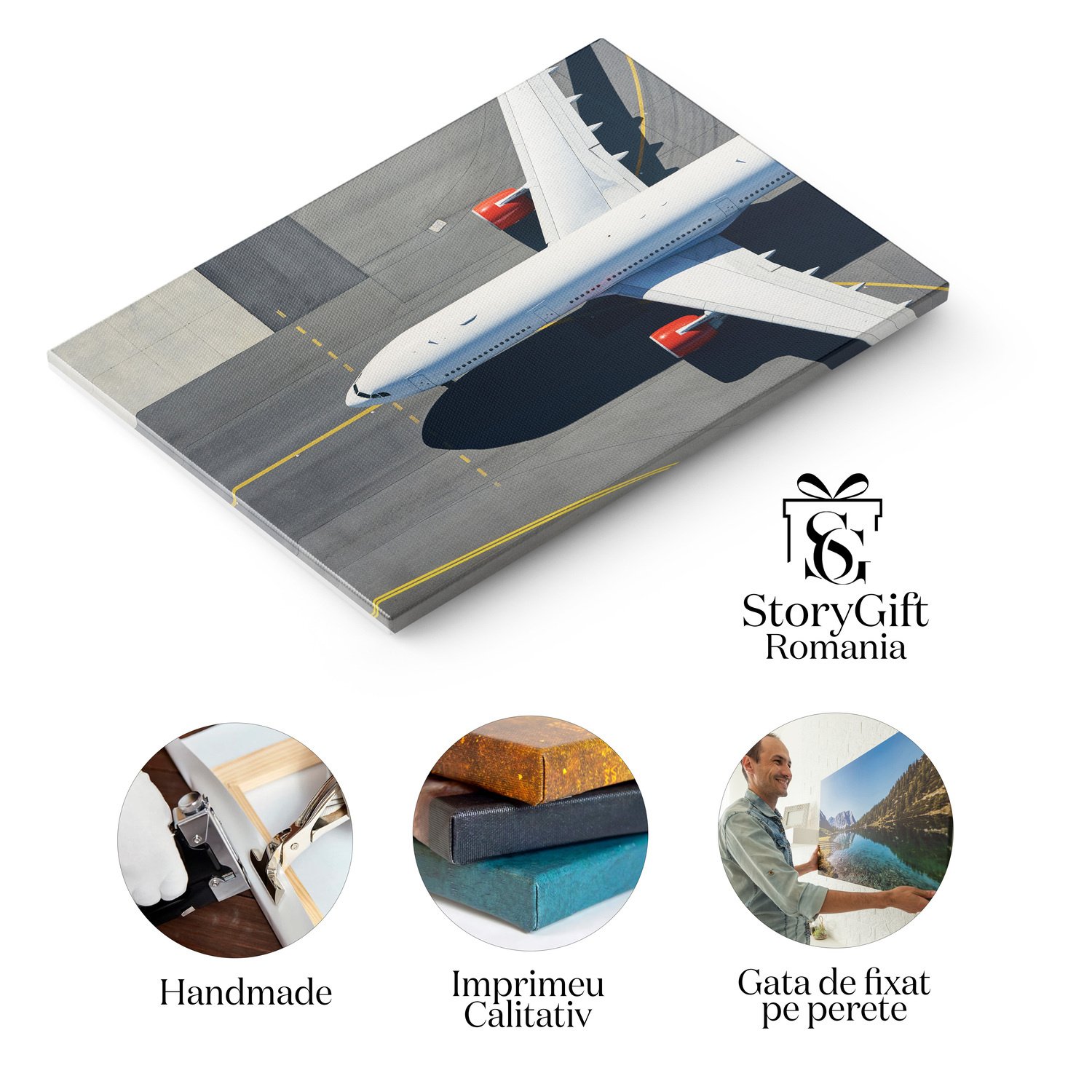 Tablou Canvas Vedere Aeriana la Aeroport Avion Taxand catre Pista de Decolare aerian, aeroport, avion, taxiway, decolare - Tablou Canvas Signature de la StoryGift Romania