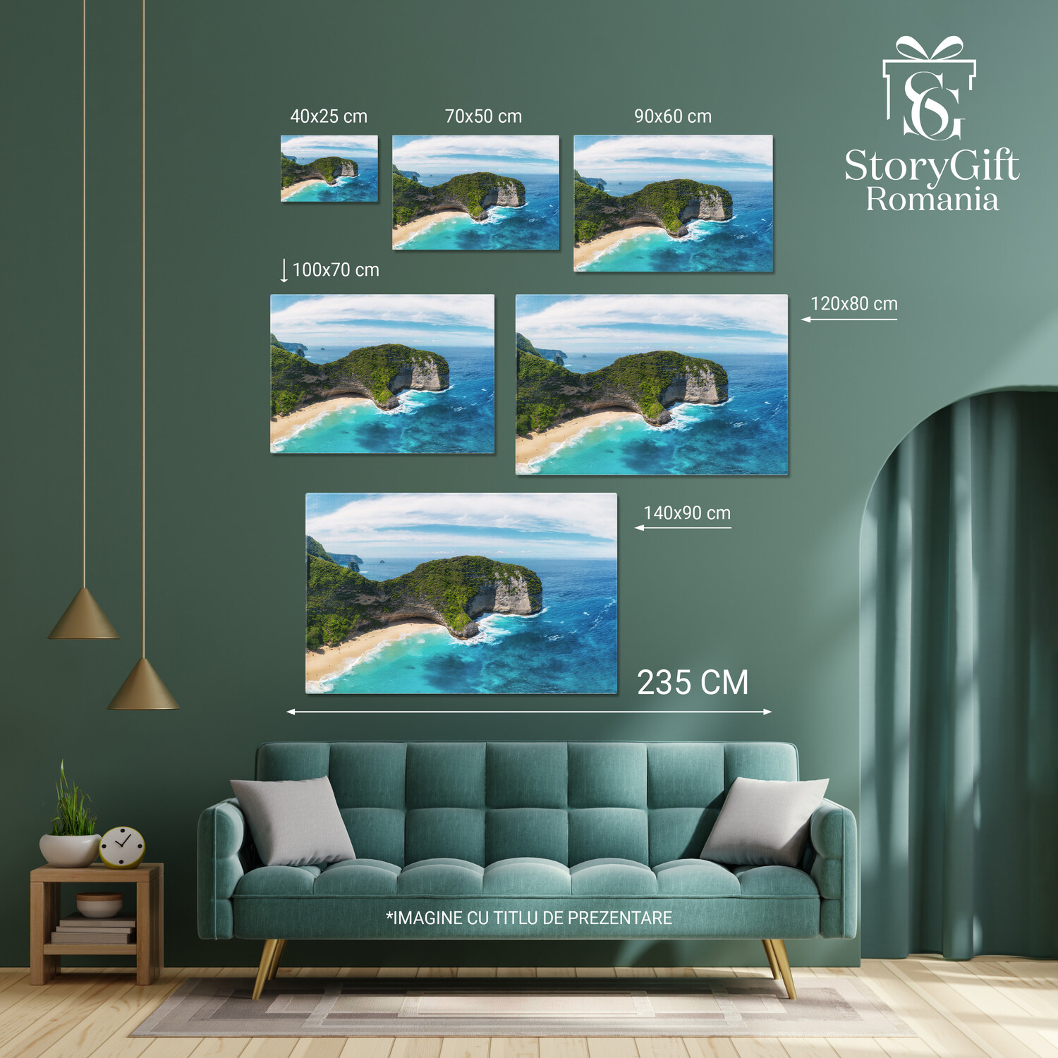 Notă importantă: Precizăm că imaginile de pe site au scop ilustrativ. Detaliile reale ale produsului pot prezenta diferențe minore față de reprezentările digitale, datorită variațiilor de culoare, mărimea tabloului și rezoluția dispozitivelor. Disponibilitatea în diverse dimensiuni ne permite să satisfacem nevoile dvs. specifice; pentru a vă asigura de alegerea potrivită, recomandăm măsurarea atentă a spațiului alocat.