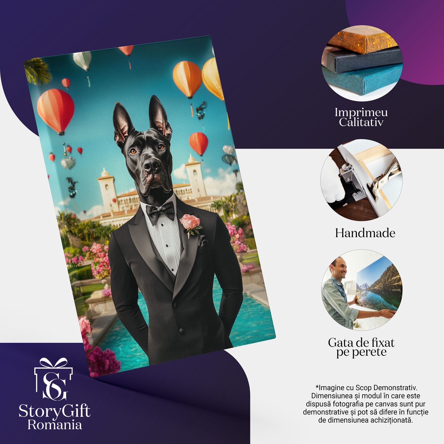Tablou Canvas Personalizat Costum Masculin Clasic Elegant, papion , Trandafir roz, Baloane Cu aer Cald, Conac Stil Frantuzesc 90x60CM