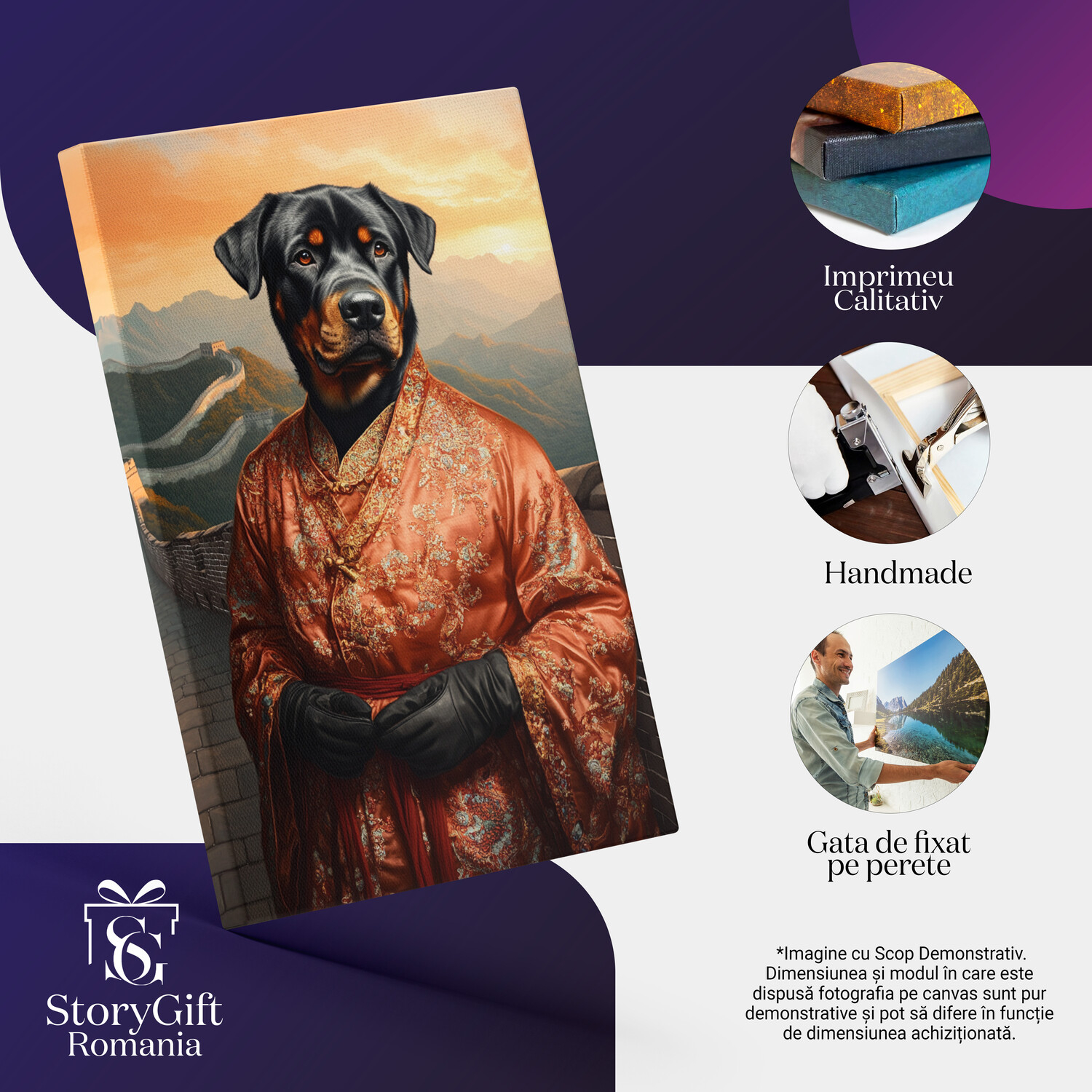 Tablou Canvas Personalizat Tinuta Asiatica Tailandeza Pe Zidul Chinezesc, Manusi De Piele, Tinuta Portocalie, Apus DE Soare 40x25CM