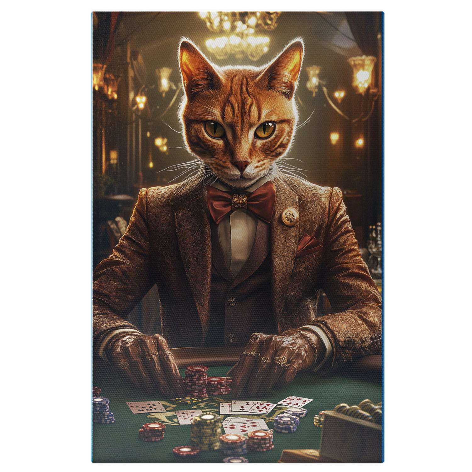 Tablou Canvas Personalizat Jucator In Costum Elegant La Masa De Poker, Papion Rosu, Jetoane De Jocuri De Noroc, Las Vegas 70x50CM