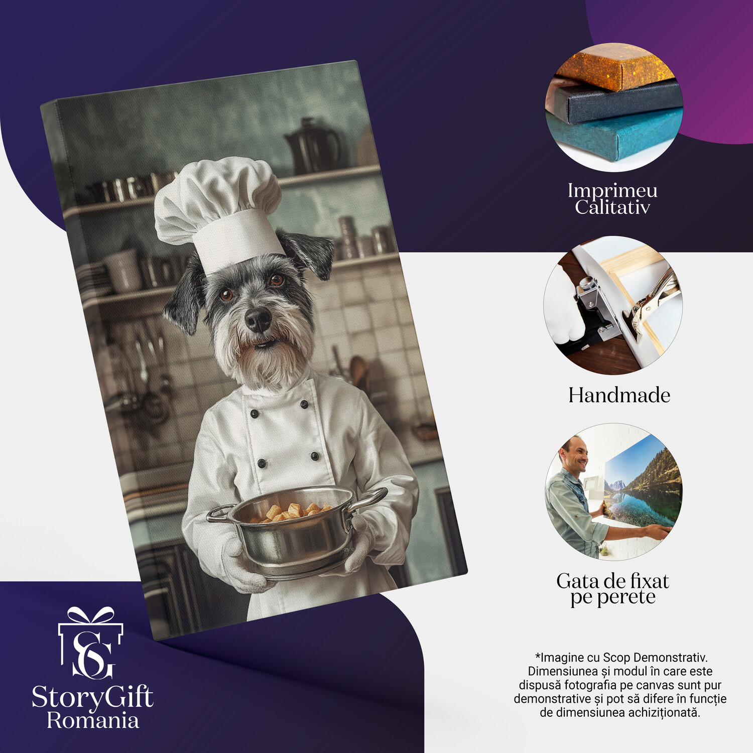 Tablou Canvas Personalizat Bucatar Cheff Cu O Oala, Tinuta Clasica, Halat Alb si Palarie Inalta Alba, Mancare, Meserie 40x25CM