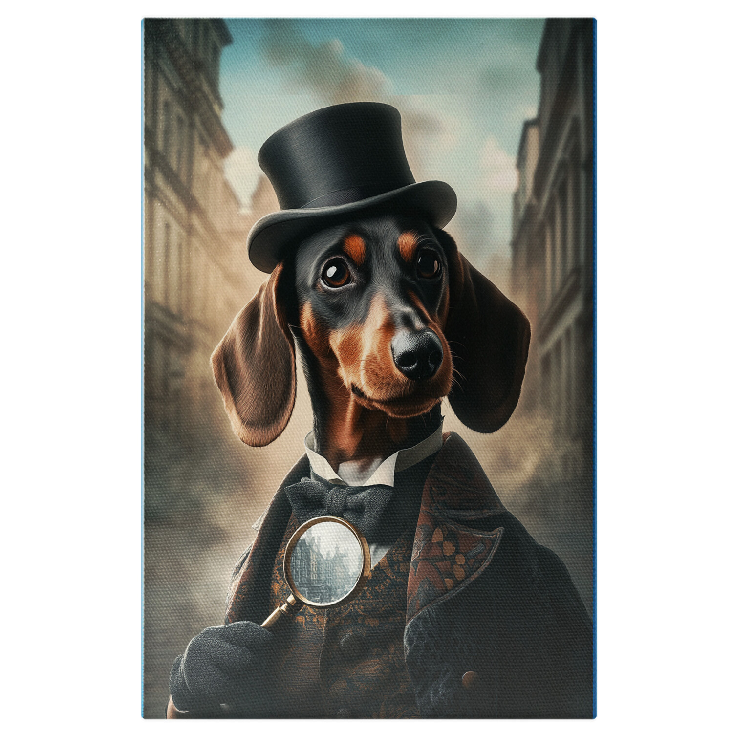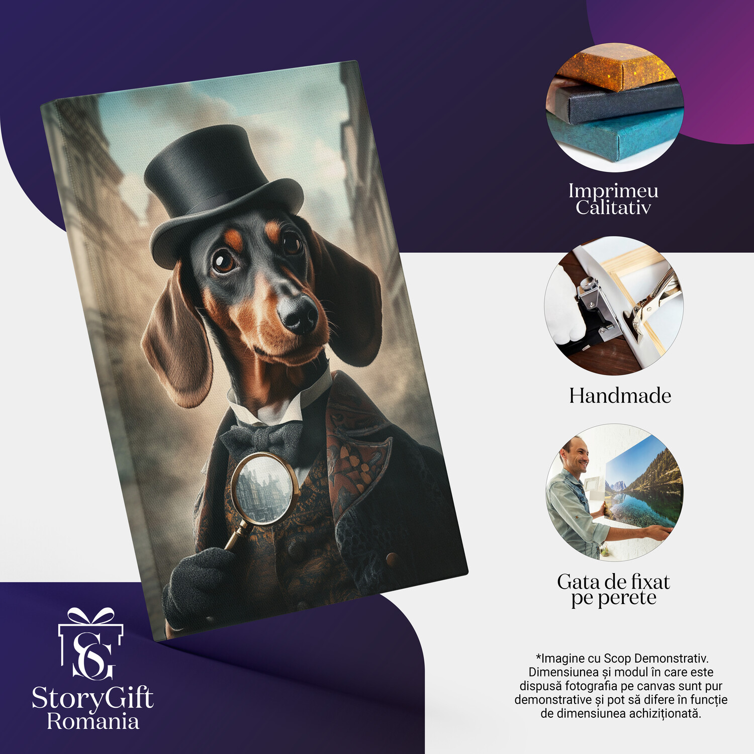 Tablou Canvas Personalizat Detectiv In Tinuta Eleganta Aristrocarta Cu Palarie Neagra Si Papion, Lupa, Filme SF 40x25CM