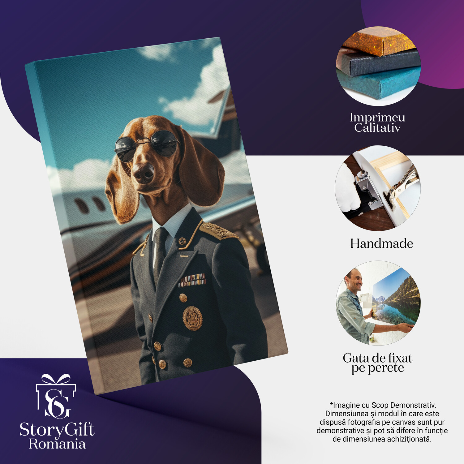 Tablou Canvas Personalizat Pilot De avion In uniforma Clasica Cu Epoleti Auri Si Insigne, Butoni Aurii, Cravata Neagra 100x70CM