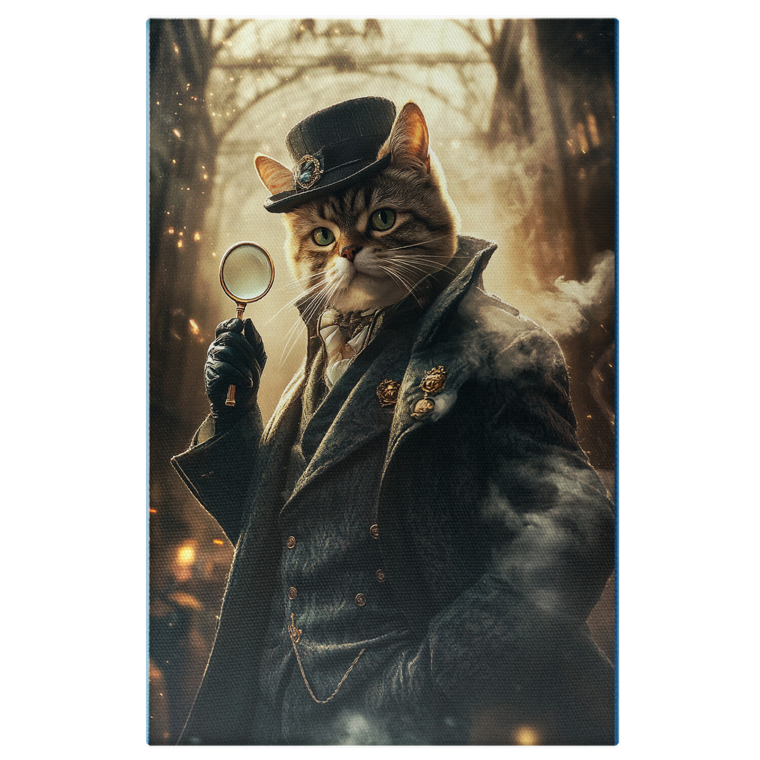Tablou Canvas Personalizat Portret Detectiv Tinuta Interbelica Stil Sherlock Holmes, cu lupa. Filme de SF, Oras Cu Cladiri Inalte 100x70CM