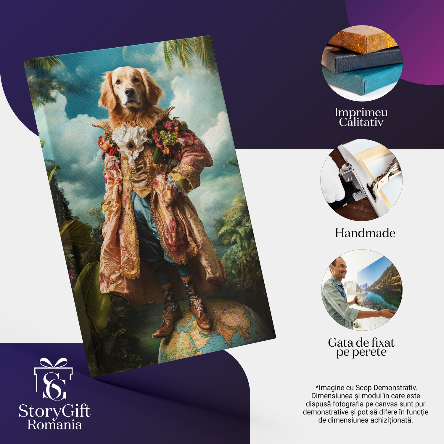 Tablou Canvas Personalizat Conte Regal Deasupra Globului Pamantesc, Tinuta Ampla Cu Flori Rosii, Aventura In Padure, Ceata 40x25CM