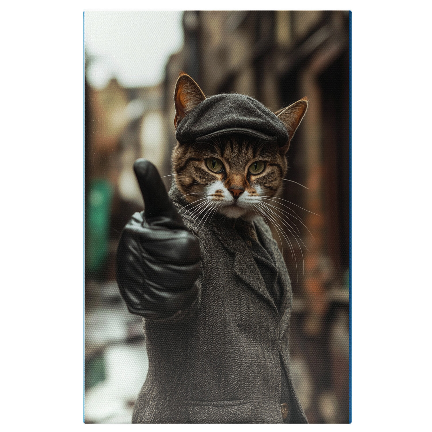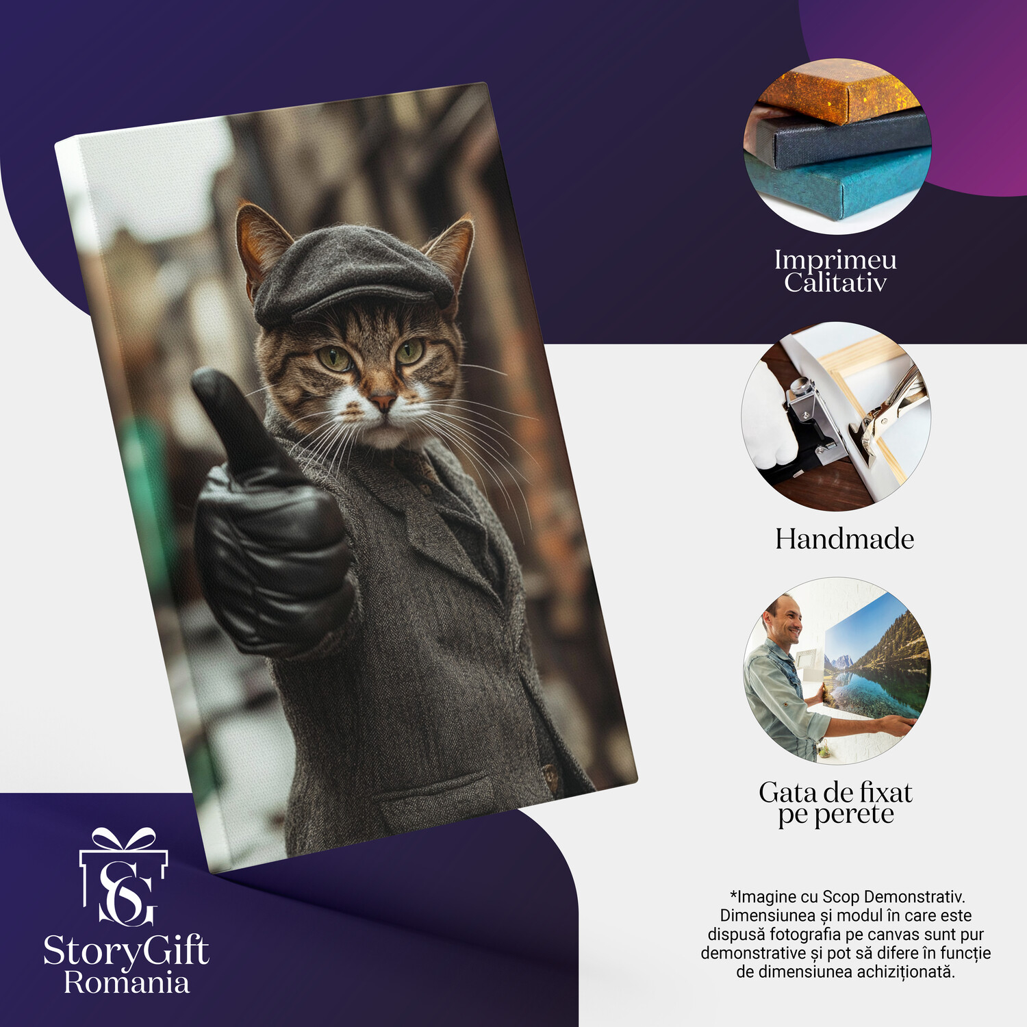 Tablou Canvas Personalizat Mascul aratand semnul gestiv OK cu mana, tinuta eleganta stil aristrocrat cu palton gri si palarie stil detectiv, basca 100x70CM