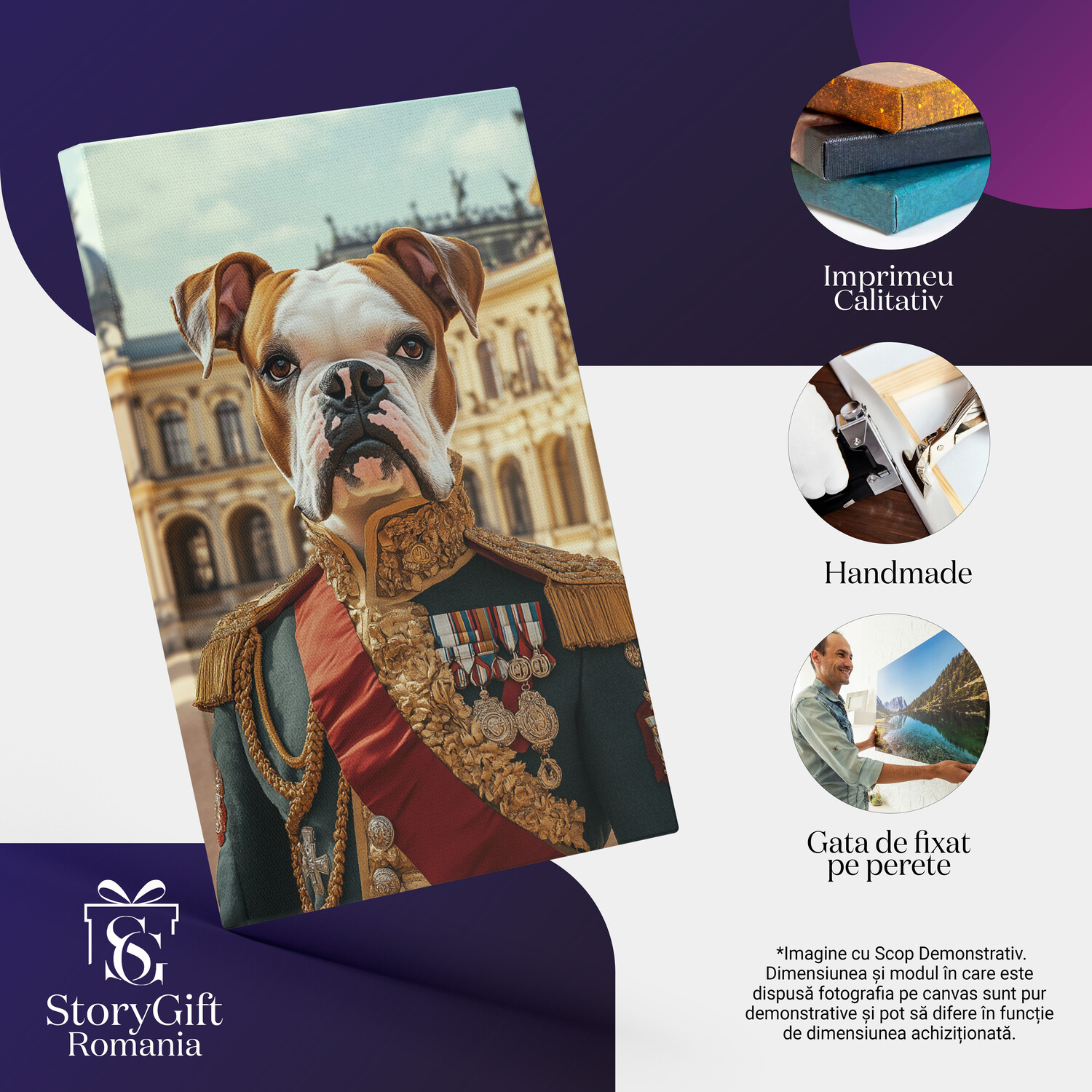 Tablou Canvas Personalizat Cavaler regal cu uniforma neagra cu detalii aurii, epoleti si insgine, razboi, colonel de lupta, elegant 40x25CM